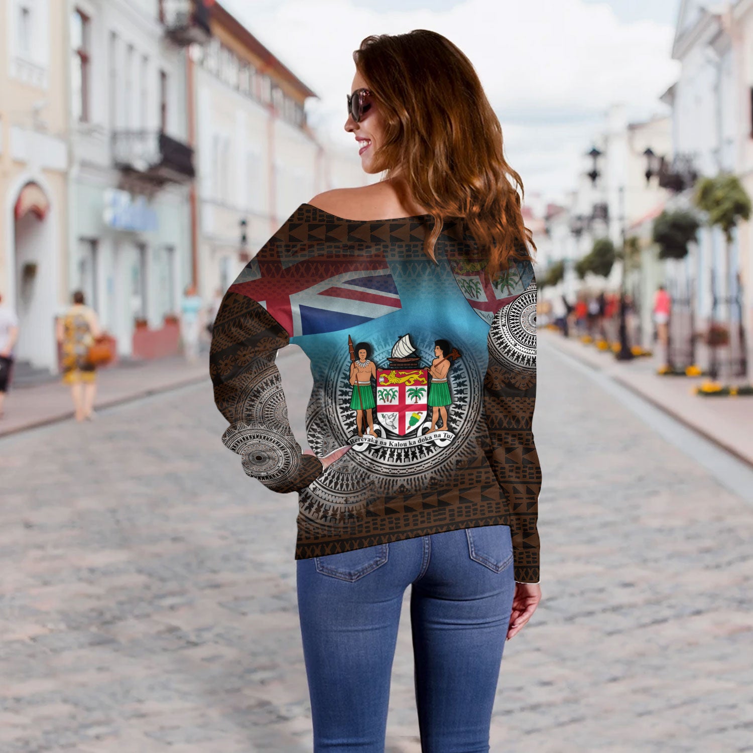 Fiji Off Shoulder Sweatshirt Custom Fiji Islanders Tapa Masi Design