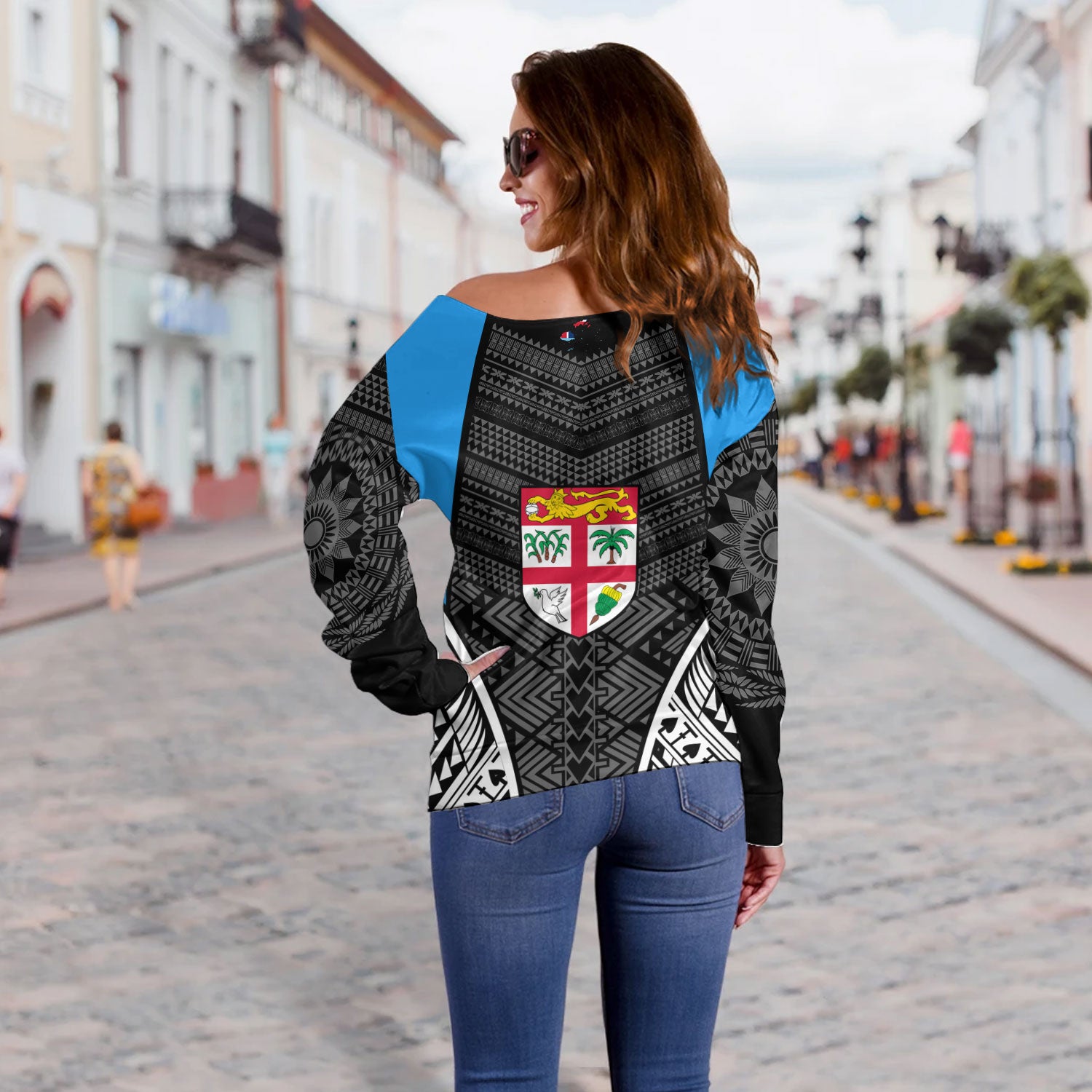 Fiji Off Shoulder Sweatshirt - Custom Fijian Tapa Patterns Sport Style