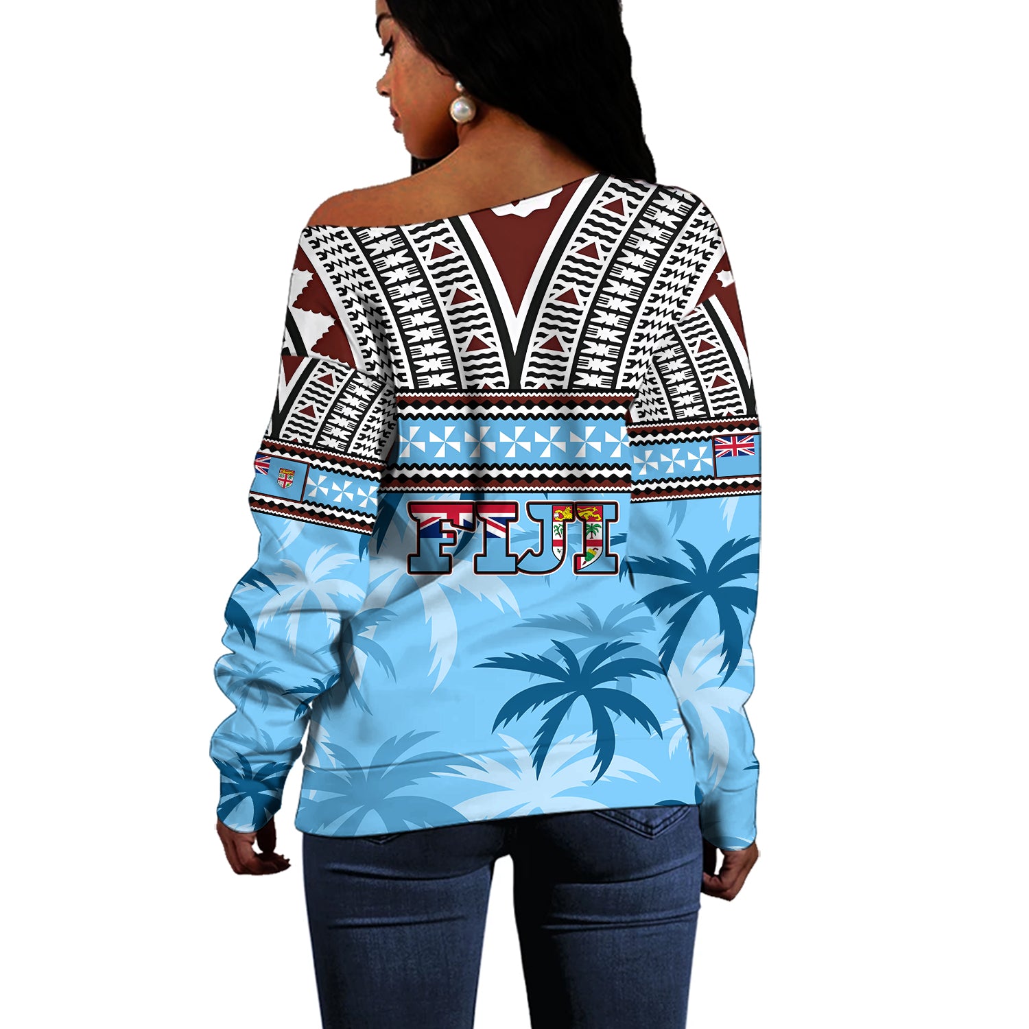 Fiji Off Shoulder Sweatshirt Fijian Tribal Masi Design With Tropical Palm Leaves