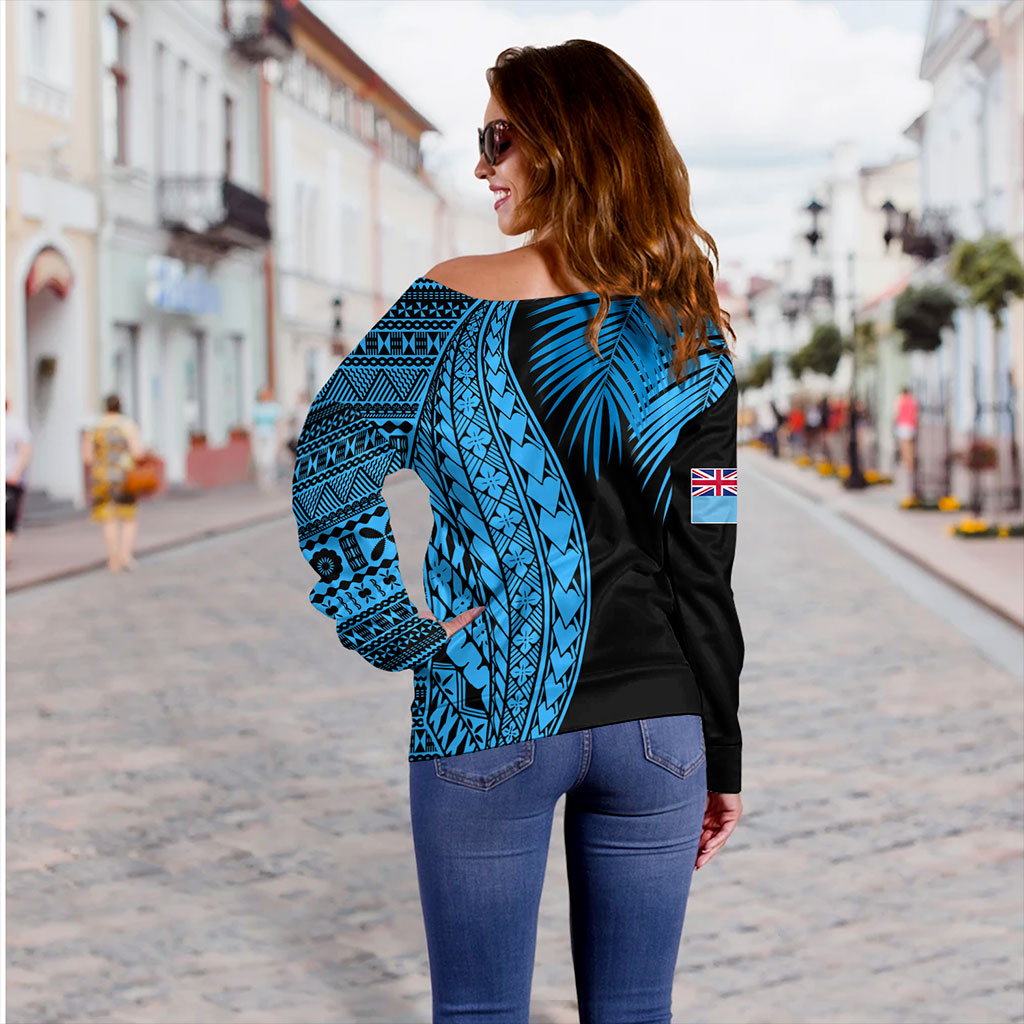 Fiji Off Shoulder Sweatshirt Traditional Tattoo Style Leaf