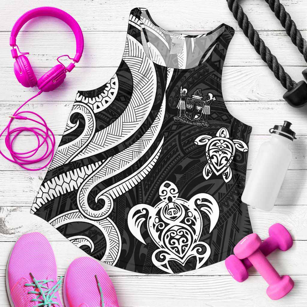Fiji Polynesian Women Racerback Tank - White Tentacle Turtle Crest