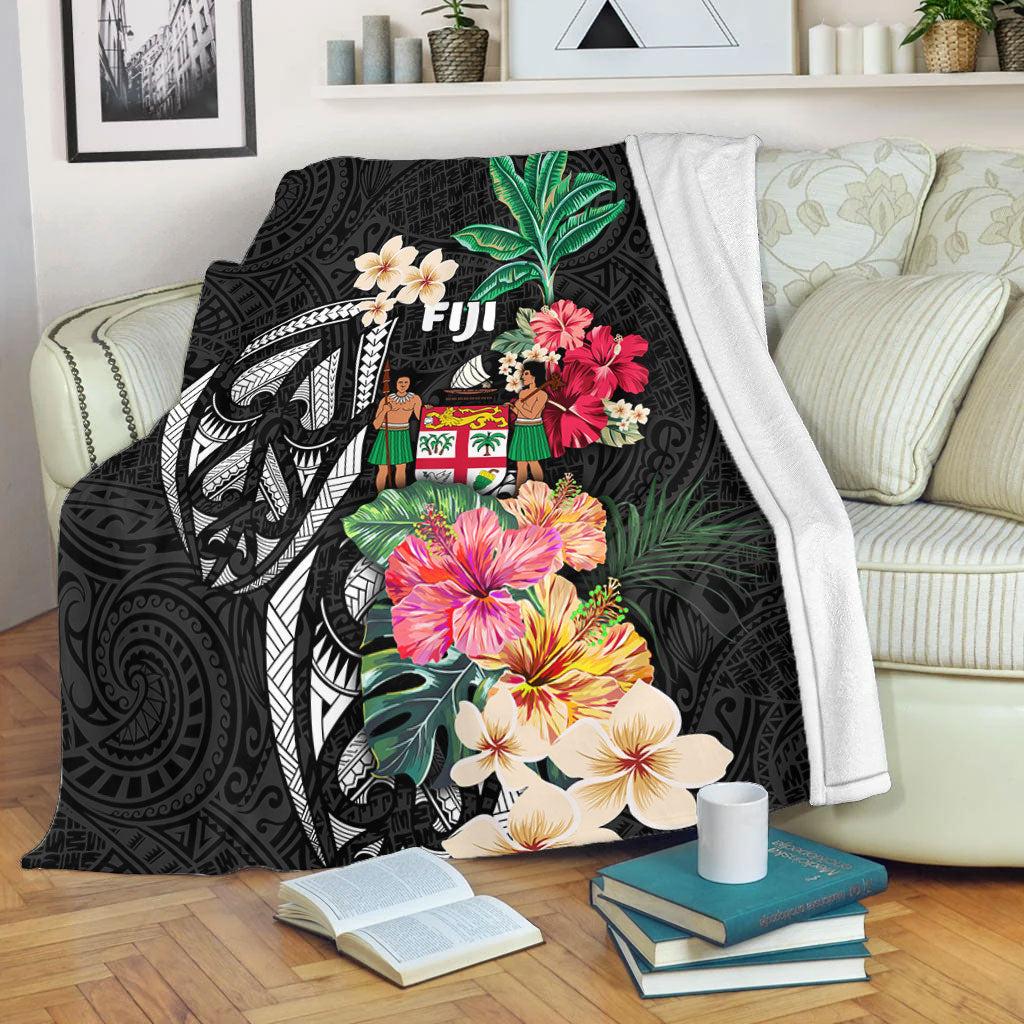 Fiji Premium Blanket Coat Of Arms Polynesian With Hibiscus