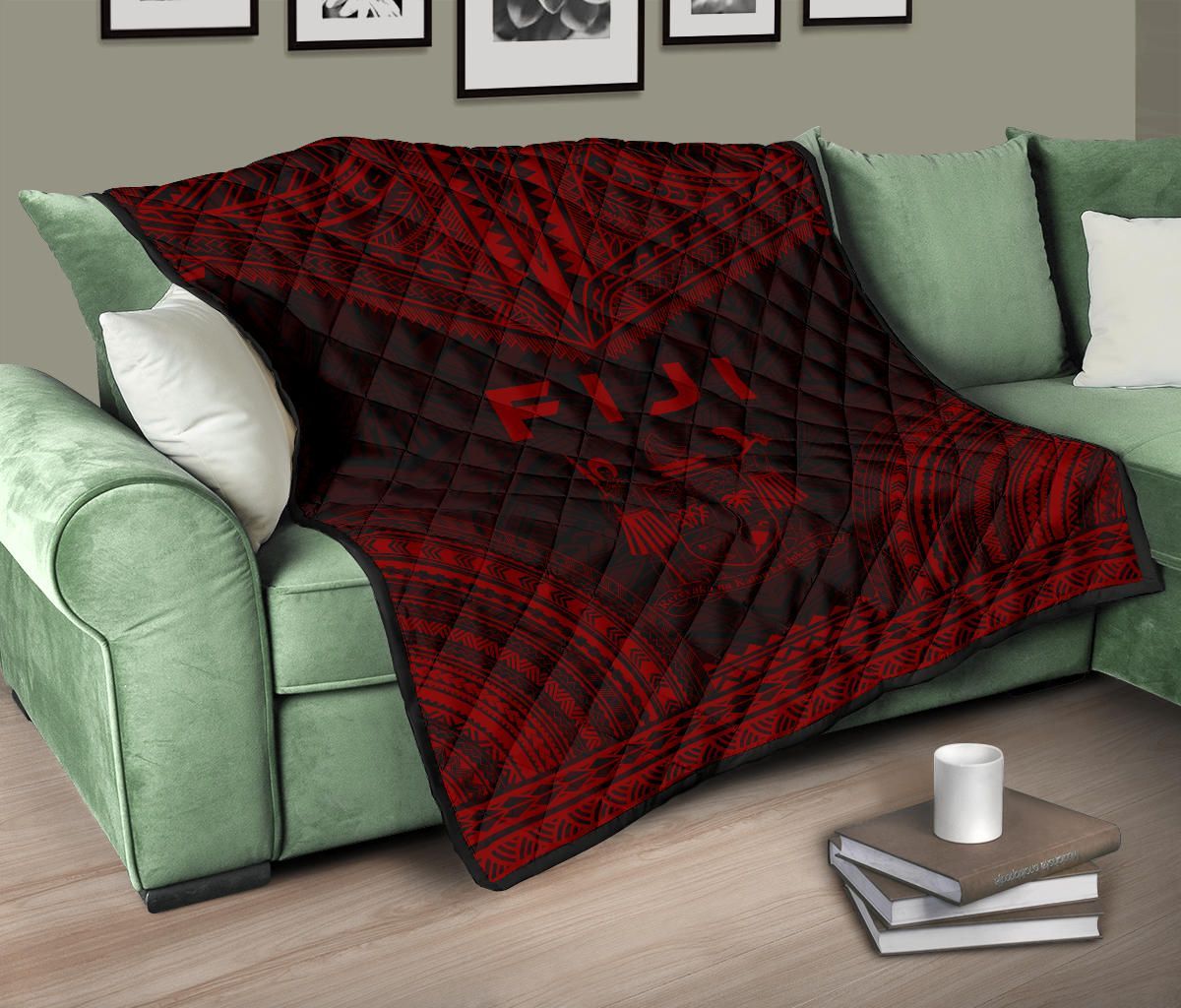 Fiji Premium Quilt - Fiji Coat Of Arms Polynesian Chief Red Version