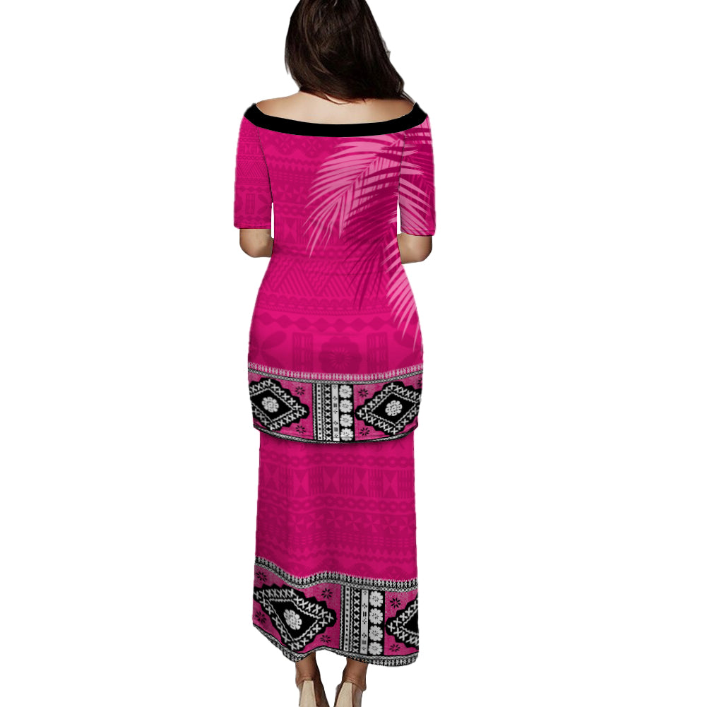 Fiji Puletasi Bula Special Fabric Leaves Pink School