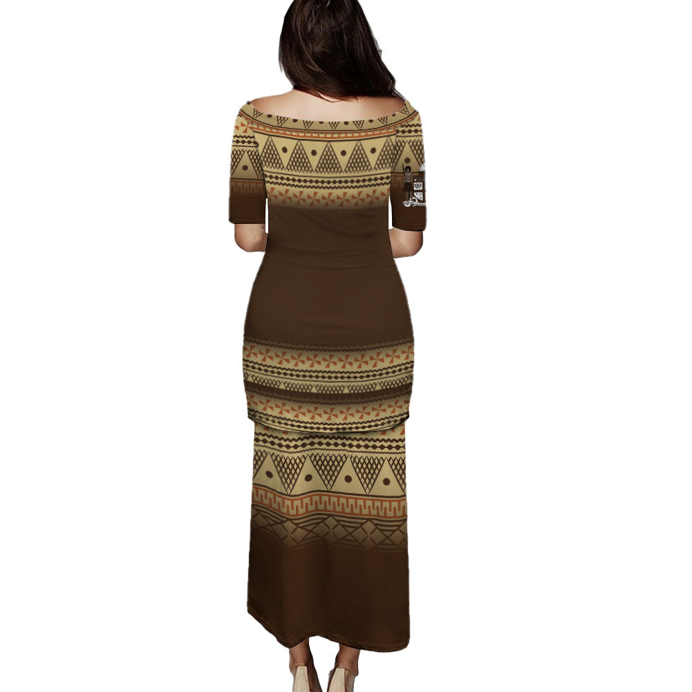 Fiji Puletasi - Flag Color With Traditional Patterns
