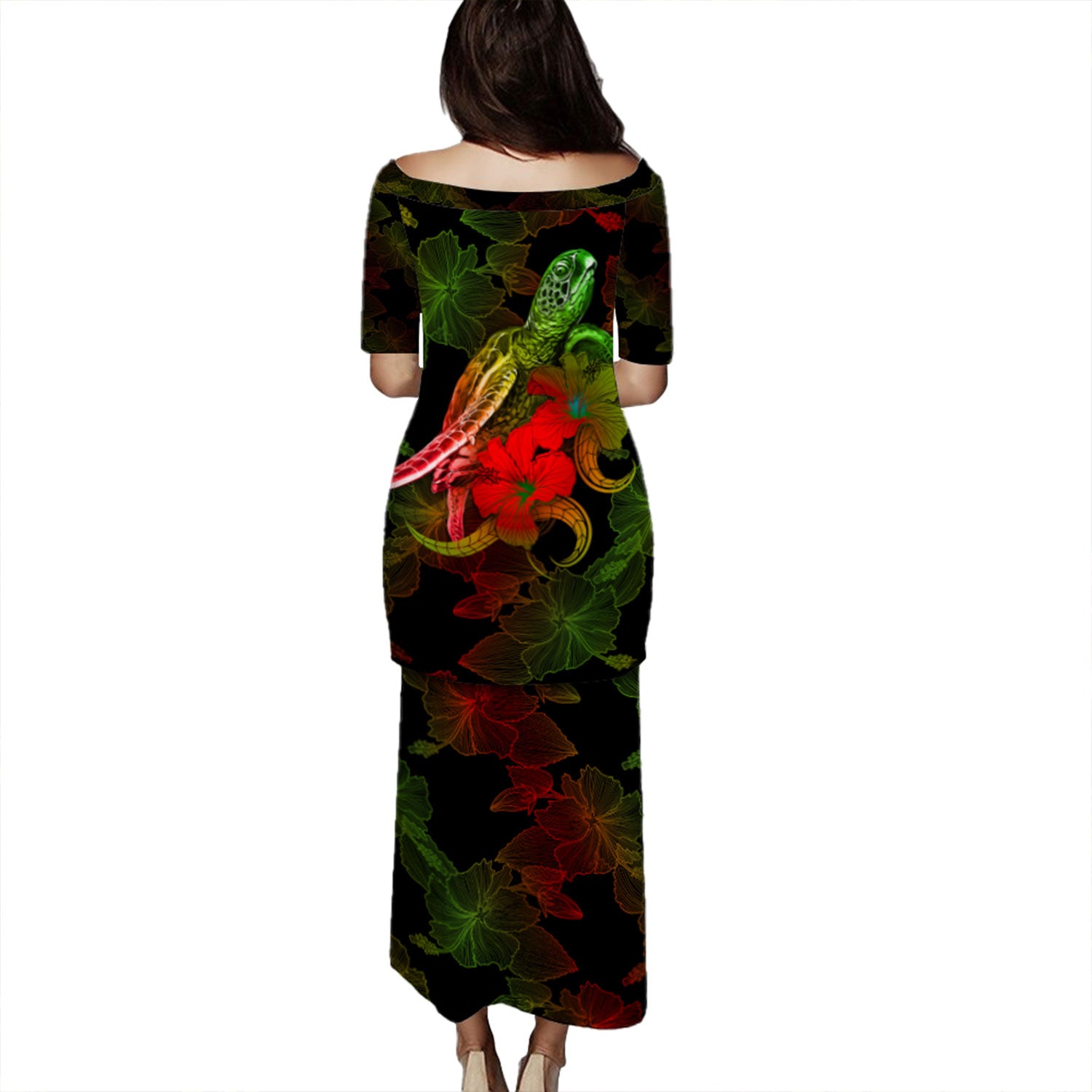 Fiji Puletasi - Sea Turtle With Blooming Hibiscus Flowers Reggae