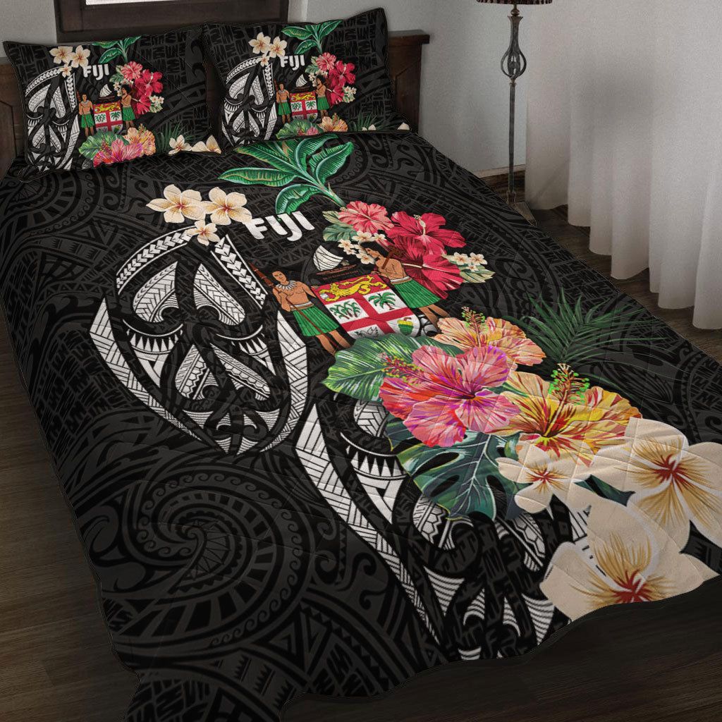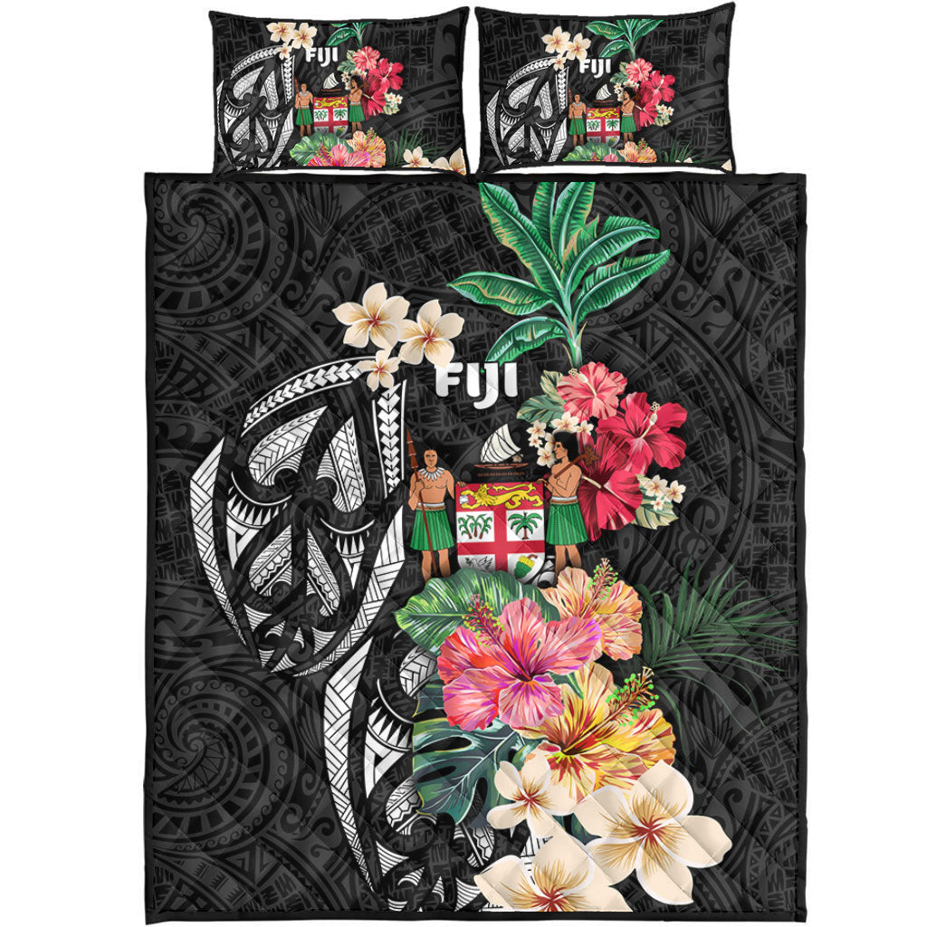 Fiji Quilt Bed Set Coat Of Arms Polynesian With Hibiscus