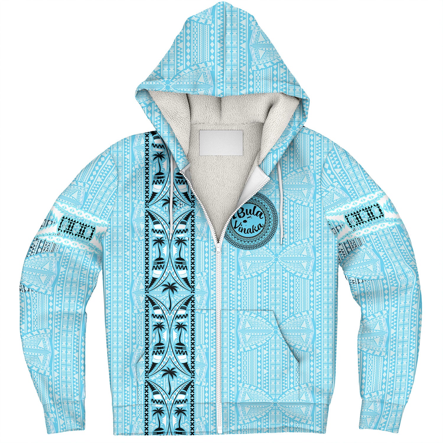 Fiji Sherpa Hoodie Bula Vinaka Tapa Palms Designs