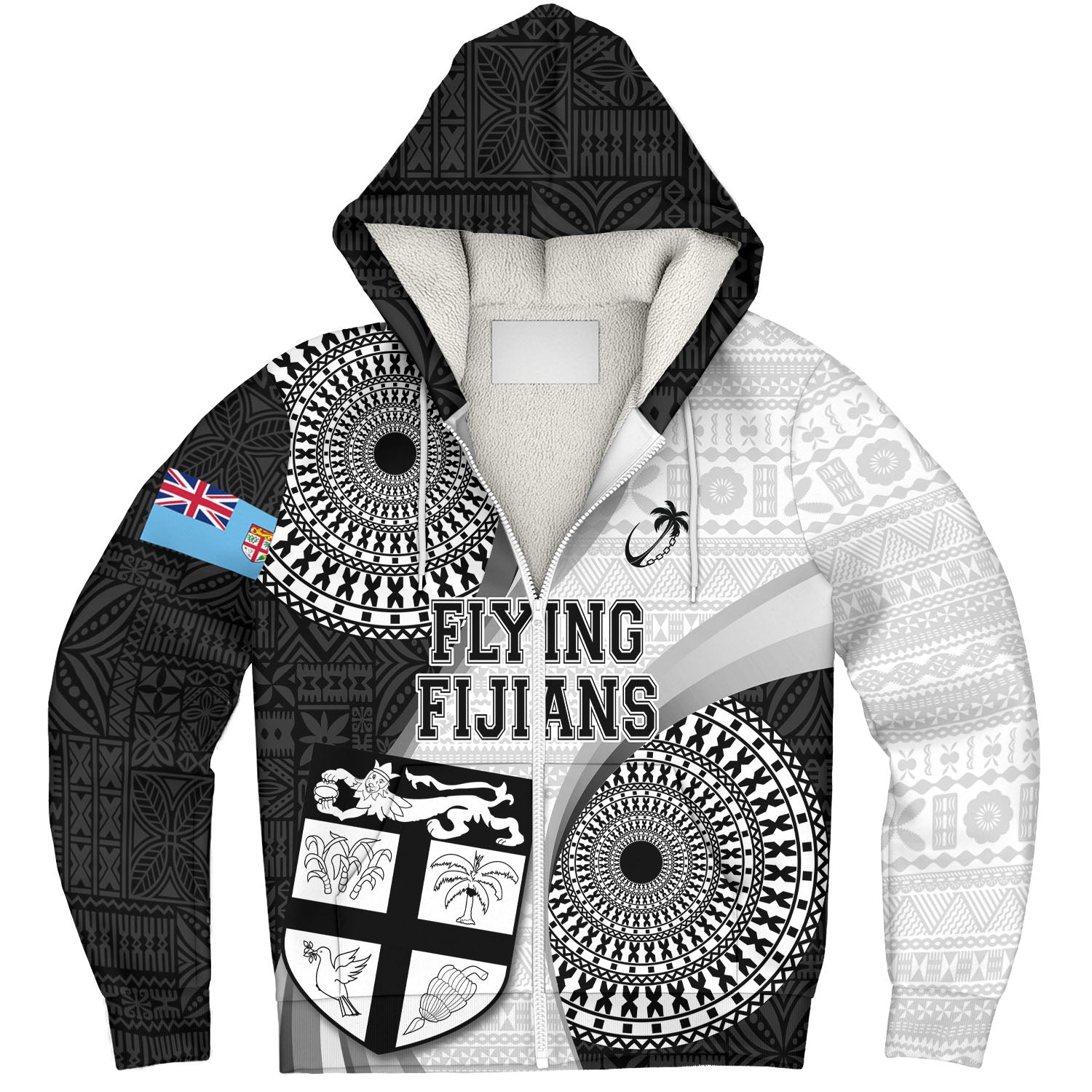 Fiji Sherpa Hoodie Flying Fijians Rugby Tribal Pattern With Shield 2023