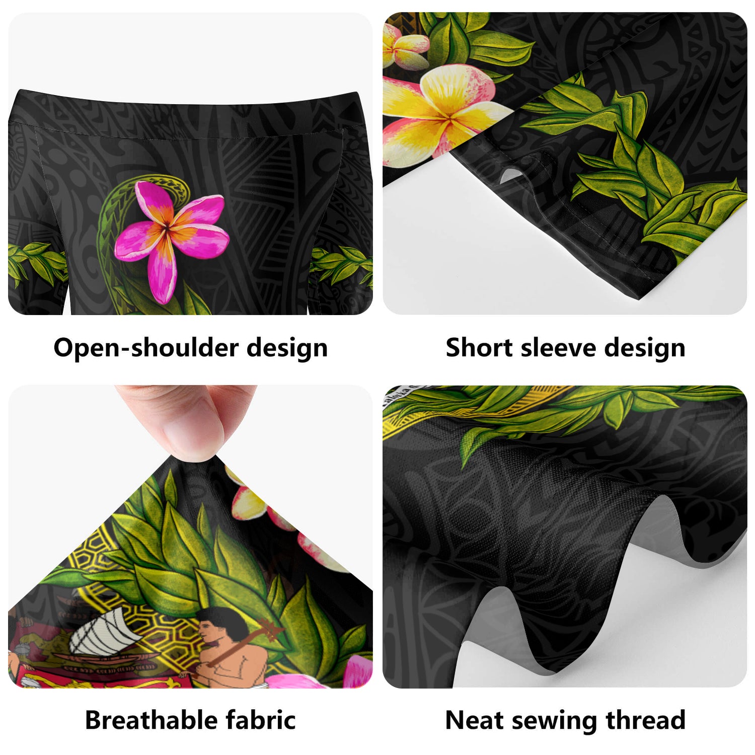Fiji Short Sleeve Off The Shoulder Lady Dress Plumeria Tribal