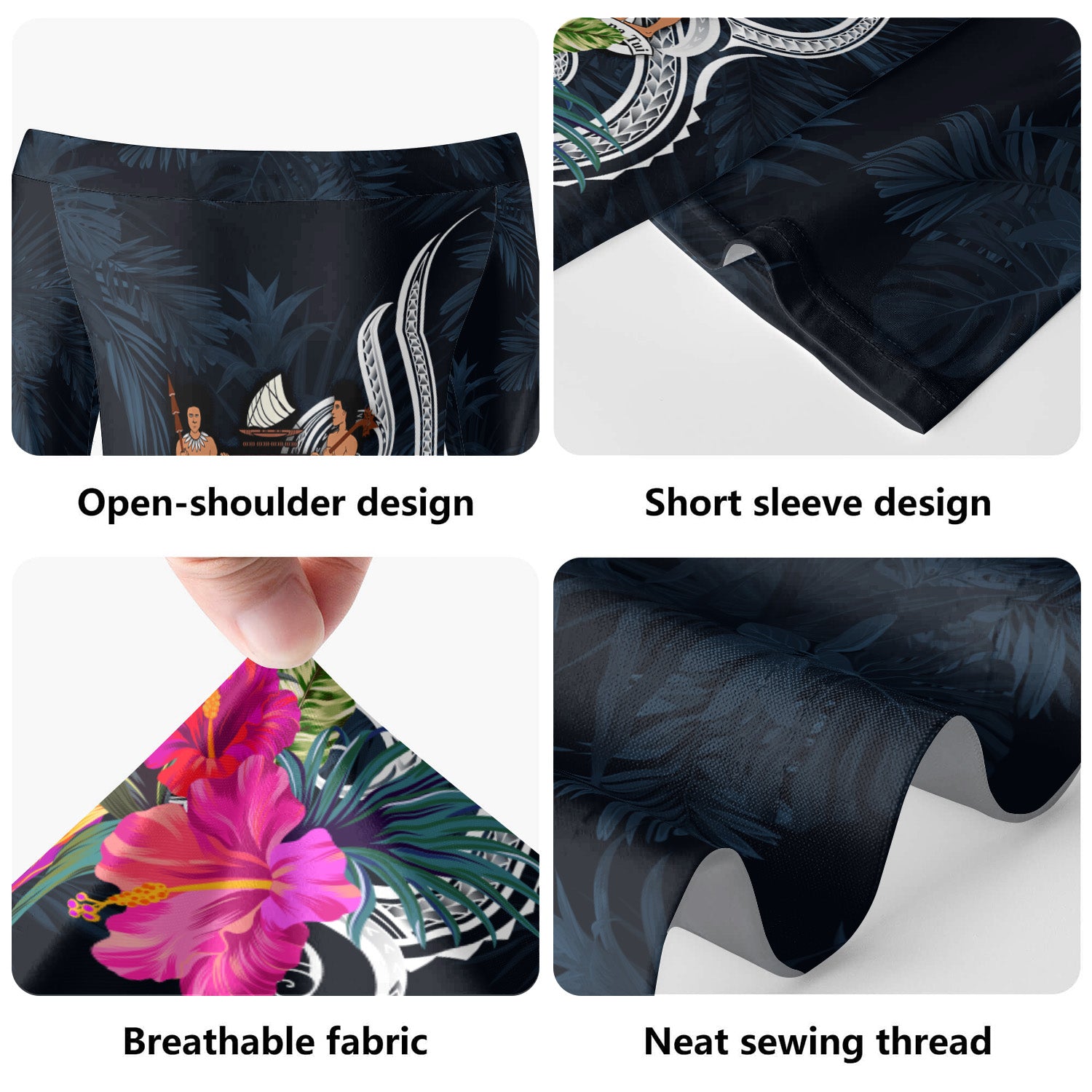 Fiji Short Sleeve Off The Shoulder Lady Dress Tropical Flower