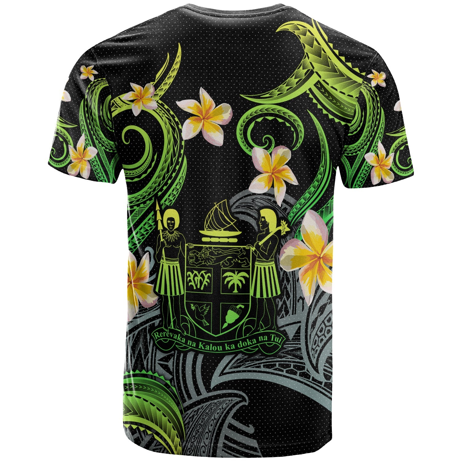 Fiji T-shirt - Custom Personalised Polynesian Waves with Plumeria Flowers (Green)
