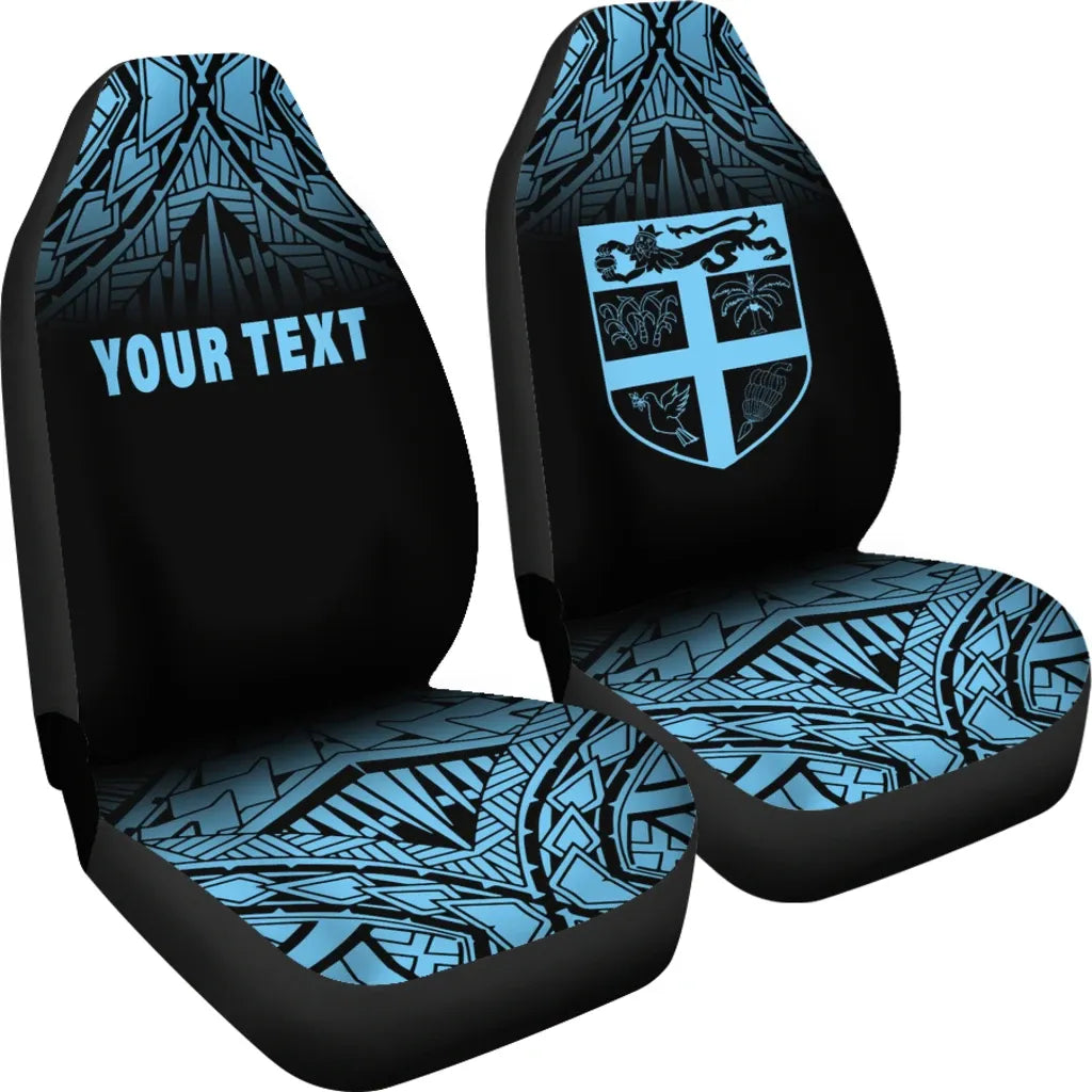 Fiji Tapa Custom Personalised Car Seat Covers - Fiji Flag Polynesian Tattoo Fog Blue