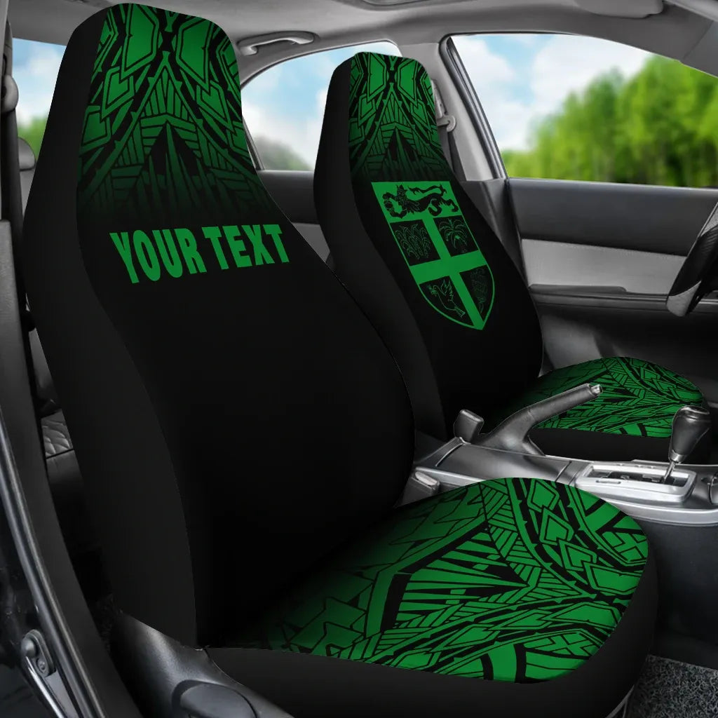 Fiji Tapa Custom Personalised Car Seat Covers - Fiji Flag Polynesian Tattoo Fog Green