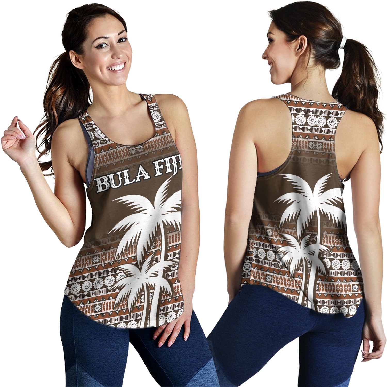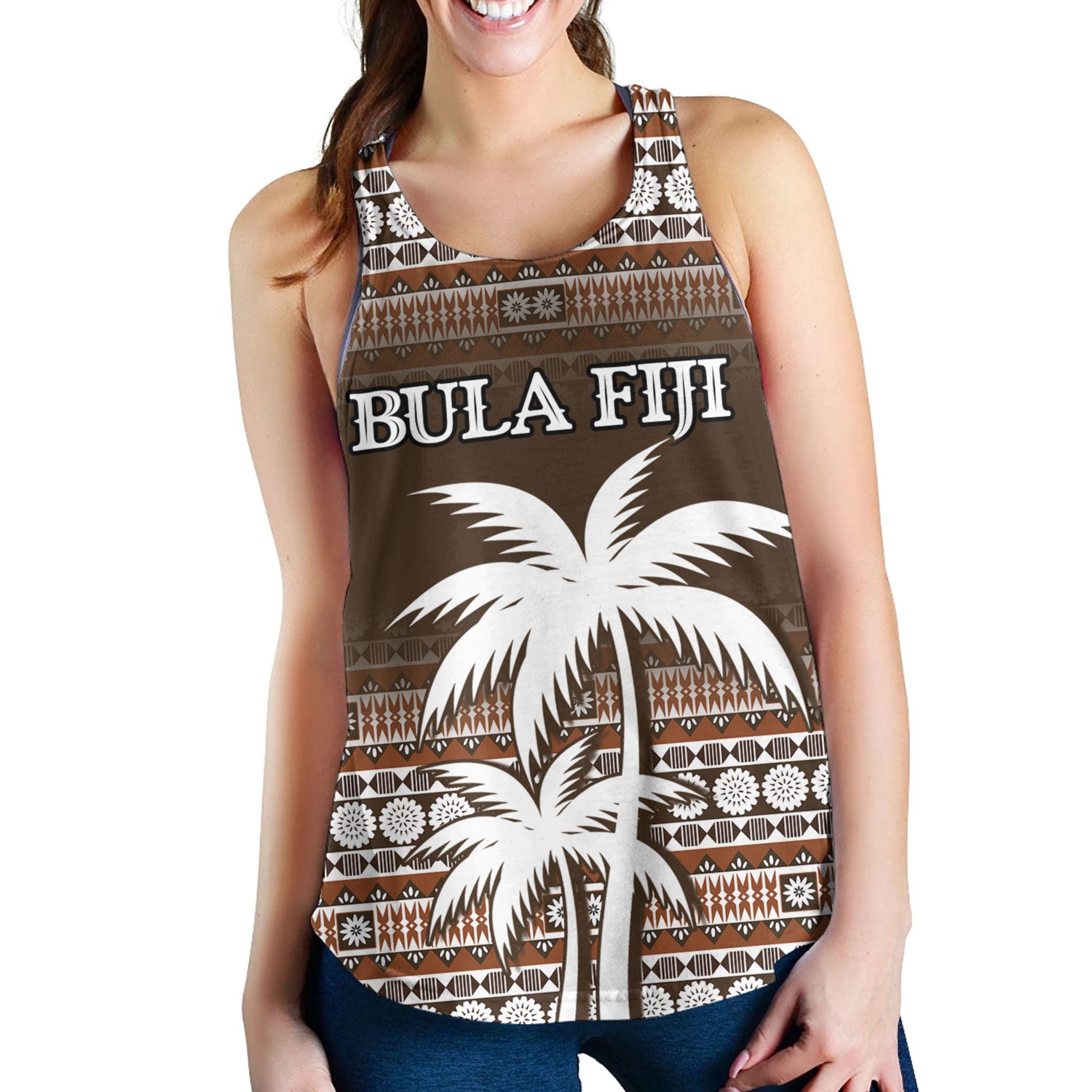 Fiji Women Tank Custom Bula Fiji Masi Brown Patterns