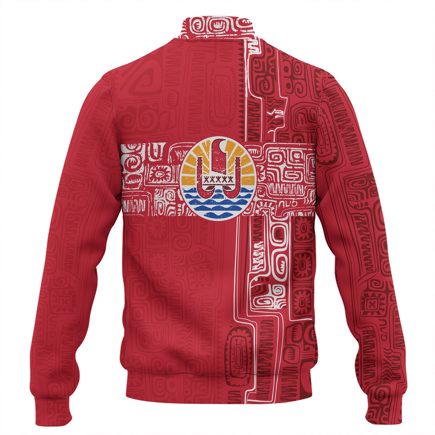 French Polynesia Baseball Jacket Tribal Pattern Tahiti Vintage Style