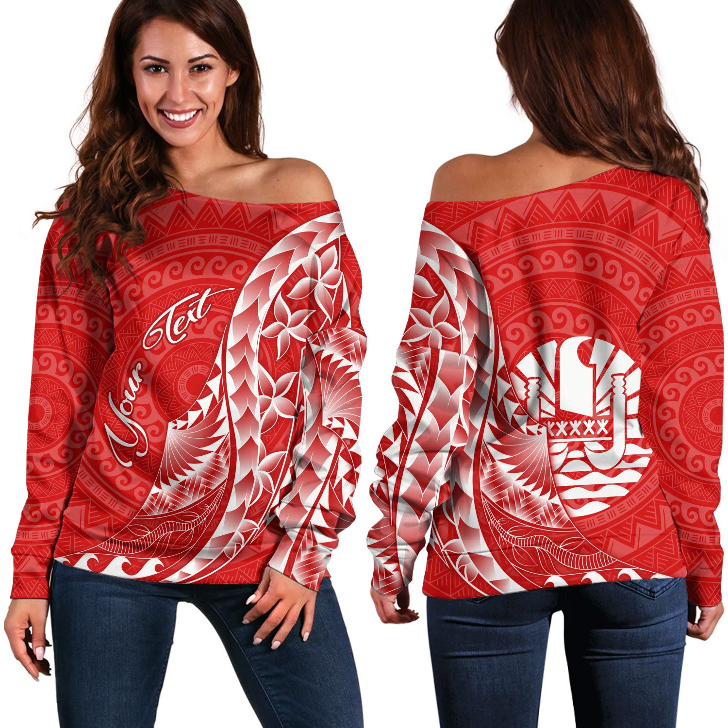 French Polynesia Custom Personalised Off Shoulder Sweatshirt Coat Of Arms Tribal Patterns Style
