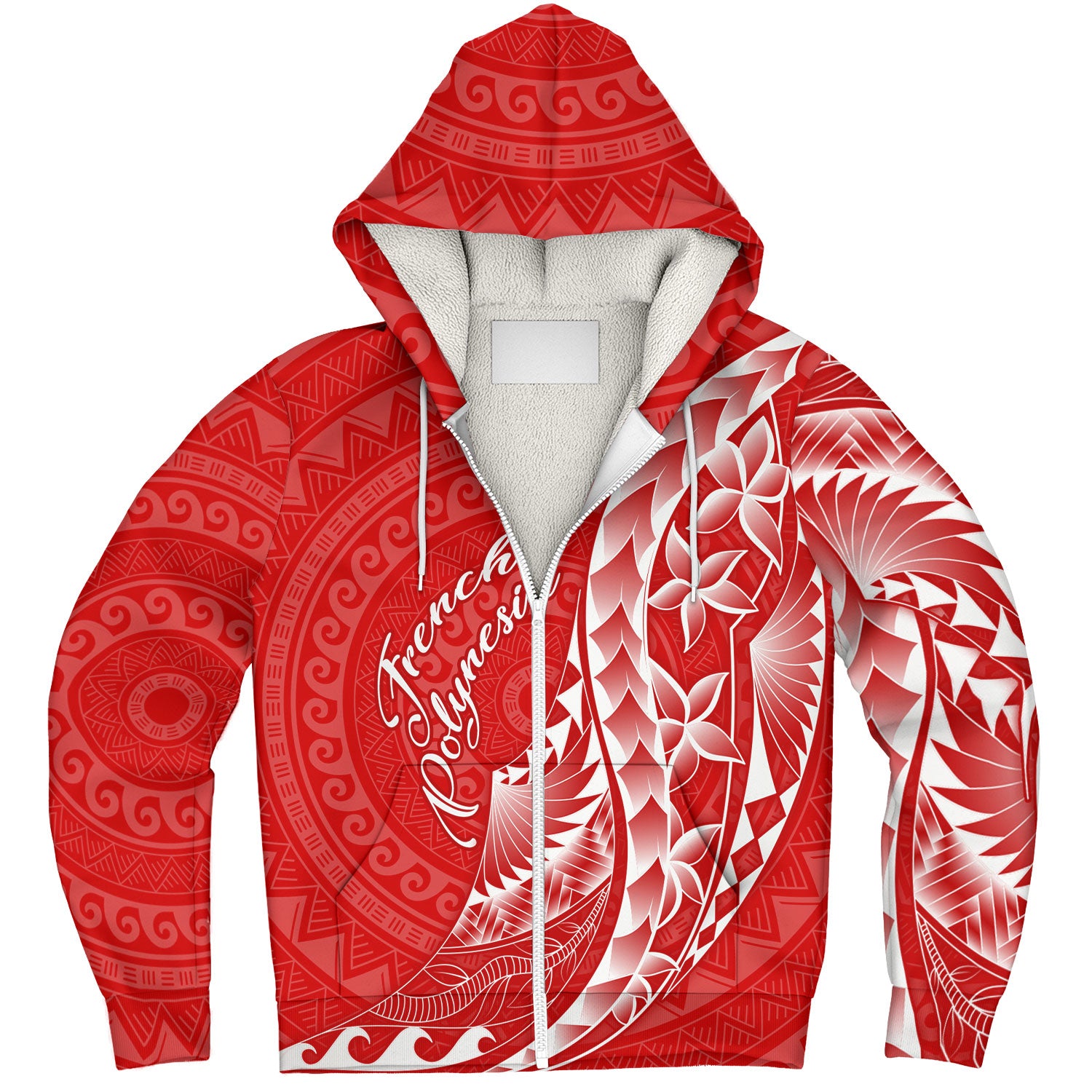 French Polynesia Custom Personalised Sherpa Hoodie Coat Of Arms Tribal Patterns Style