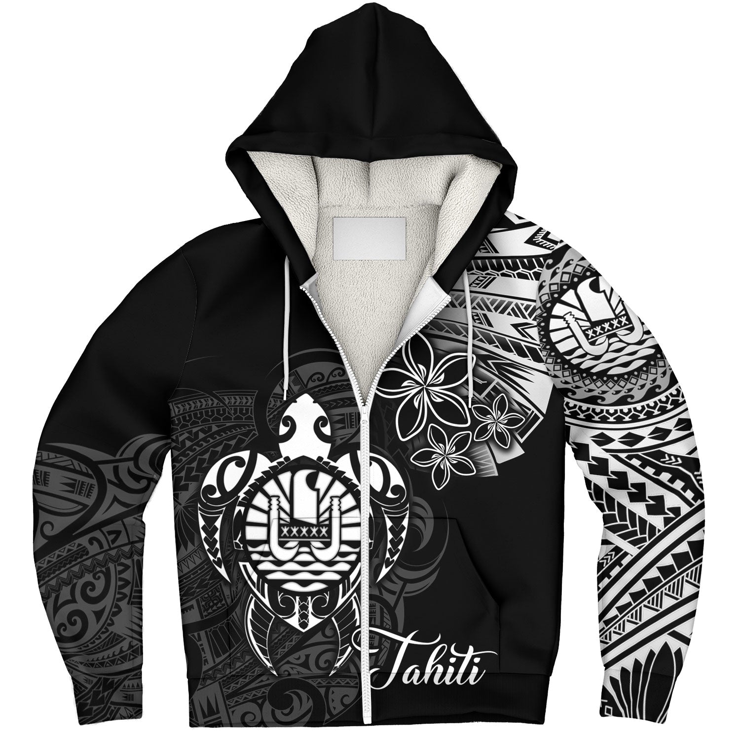 French Polynesia Custom Personalised Sherpa Hoodie Seal Turtle Plumeria Tribal Patterns