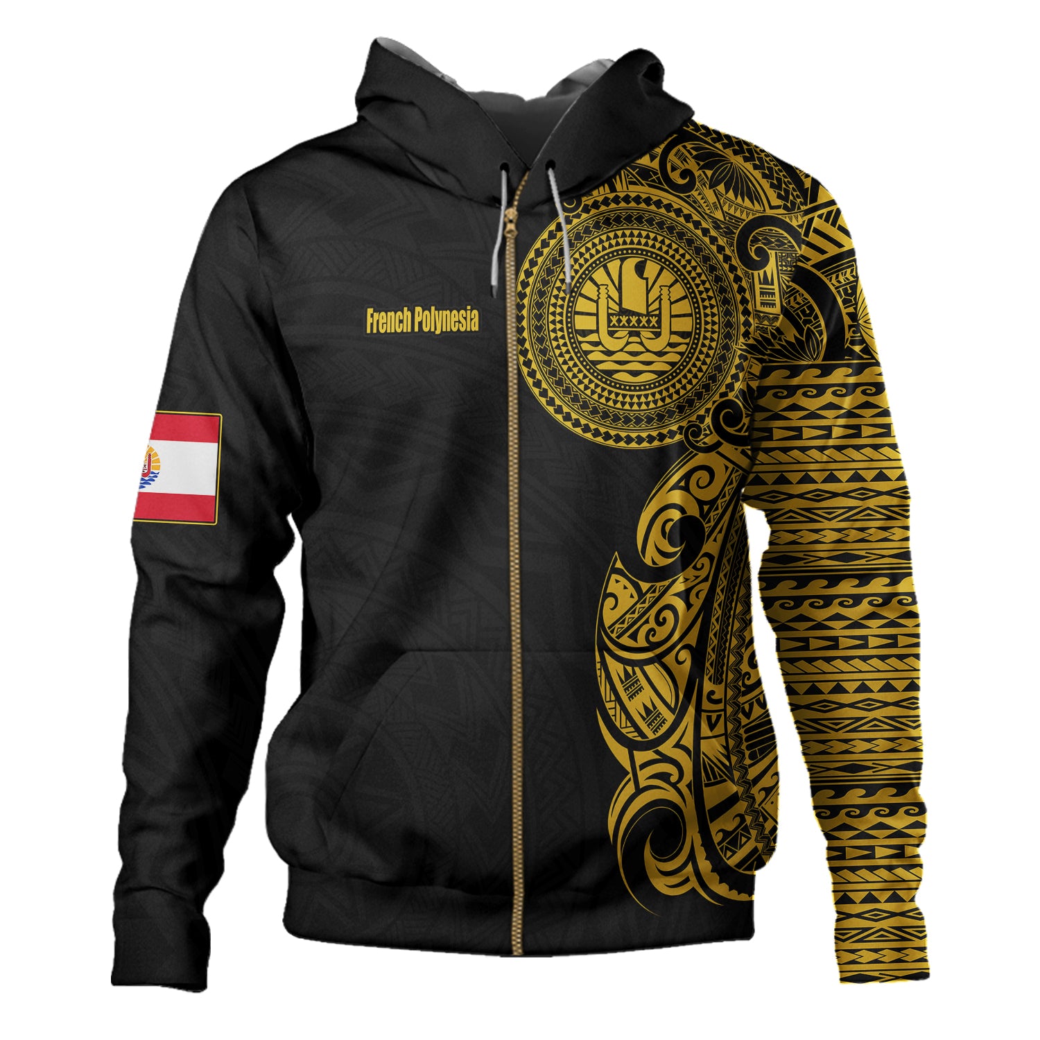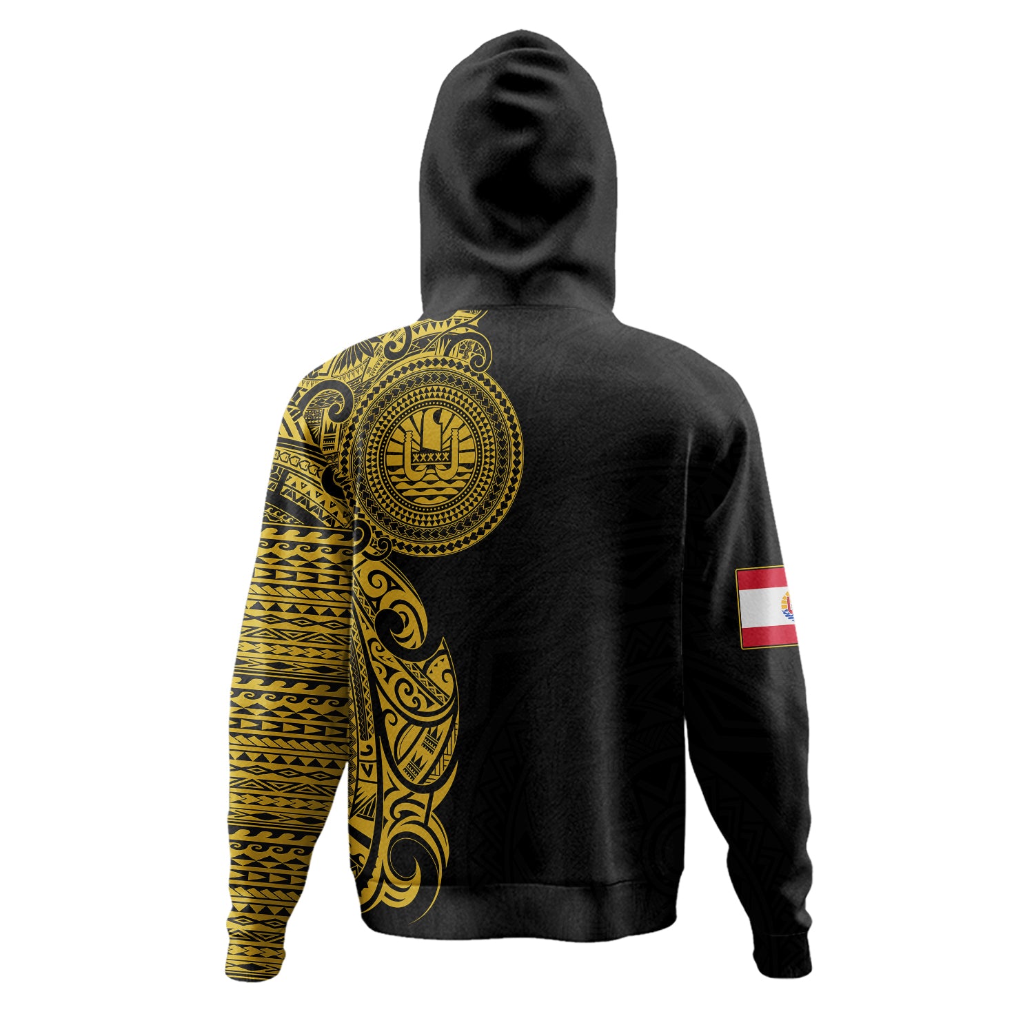 French Polynesia Hoodie Custom Polynesian Half Sleeve Gold Tattoo With Seal Black