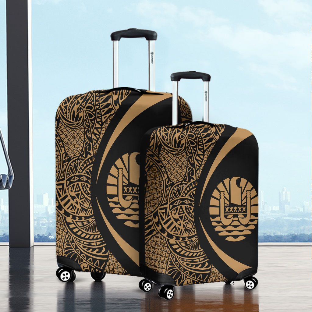 French Polynesia Luggage Cover Lauhala Gold Circle Style