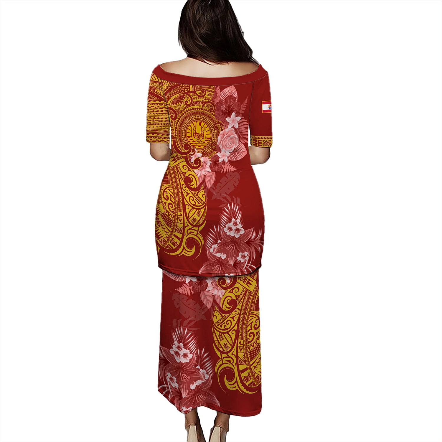 French Polynesia Puletasi Polynesian Tropical Plumeria Tribal Red