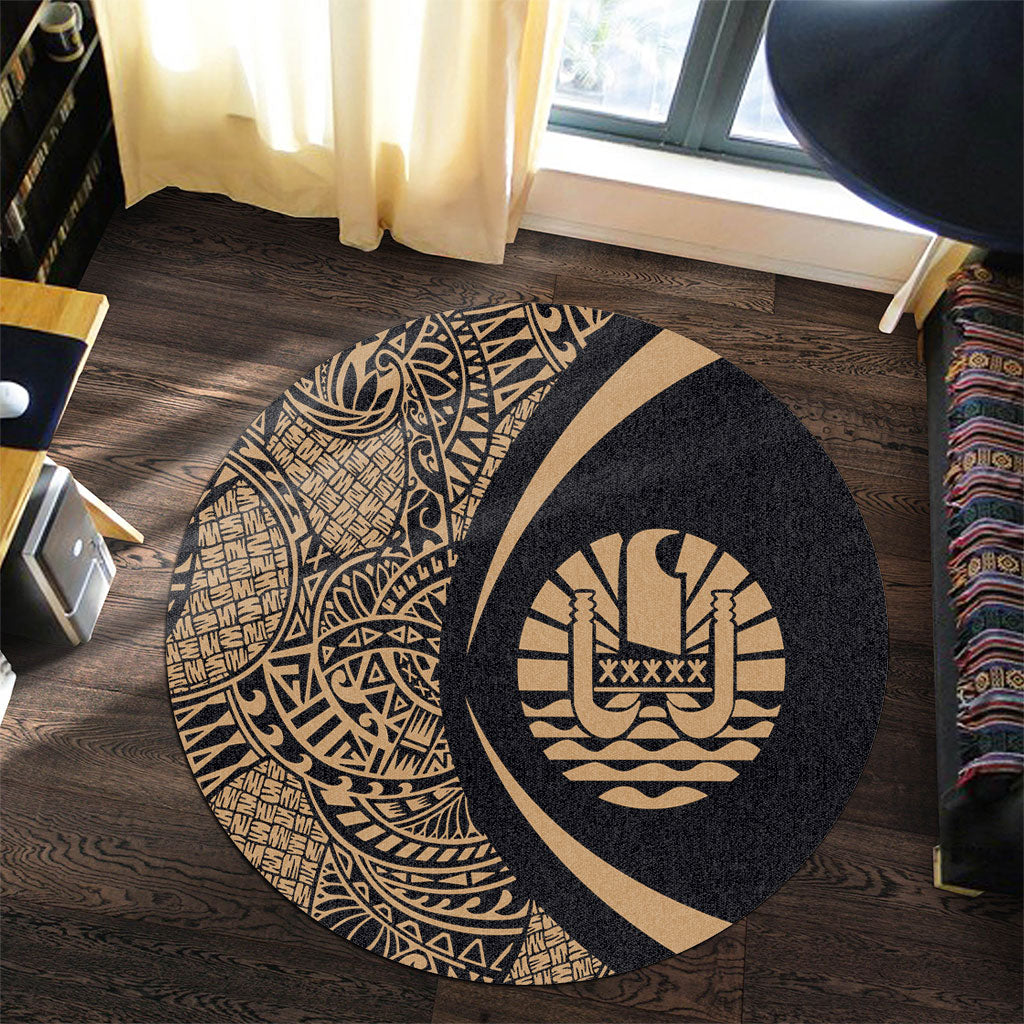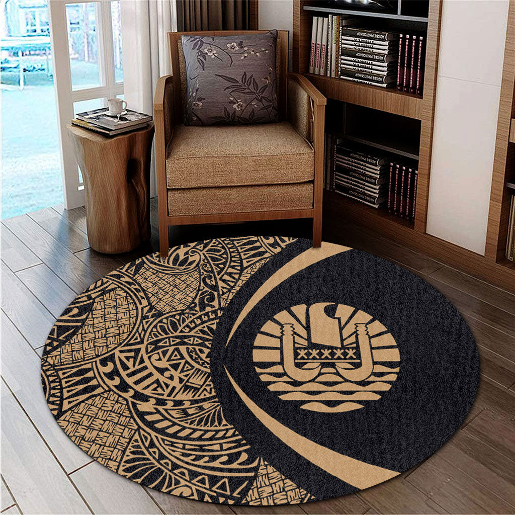 French Polynesia Round Rug Lauhala Gold Circle Style