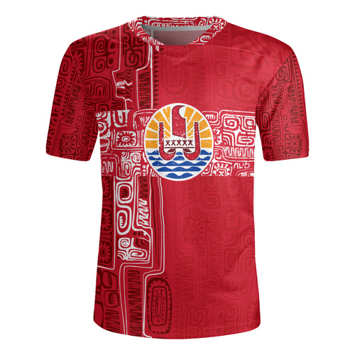 French Polynesia Rugby Jersey Tribal Pattern Tahiti Vintage Style