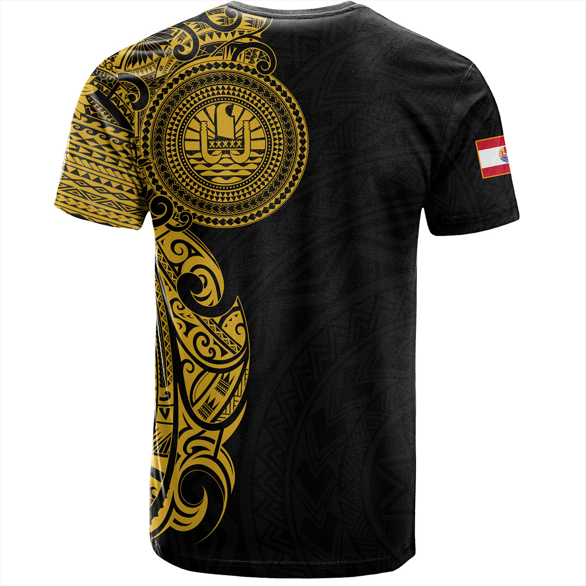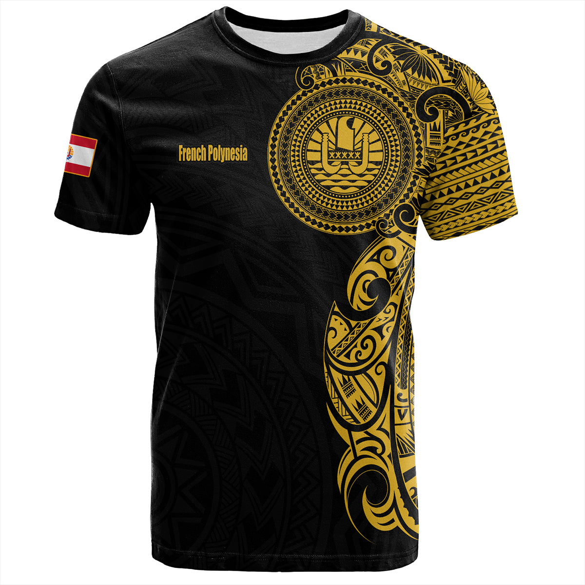 French Polynesia T-Shirt Custom Polynesian Half Sleeve Gold Tattoo With Seal Black