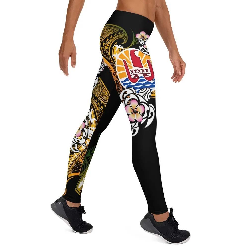 French Polynesia Tahiti Legging - Tahiti Of Seal Turtle With Plumeria