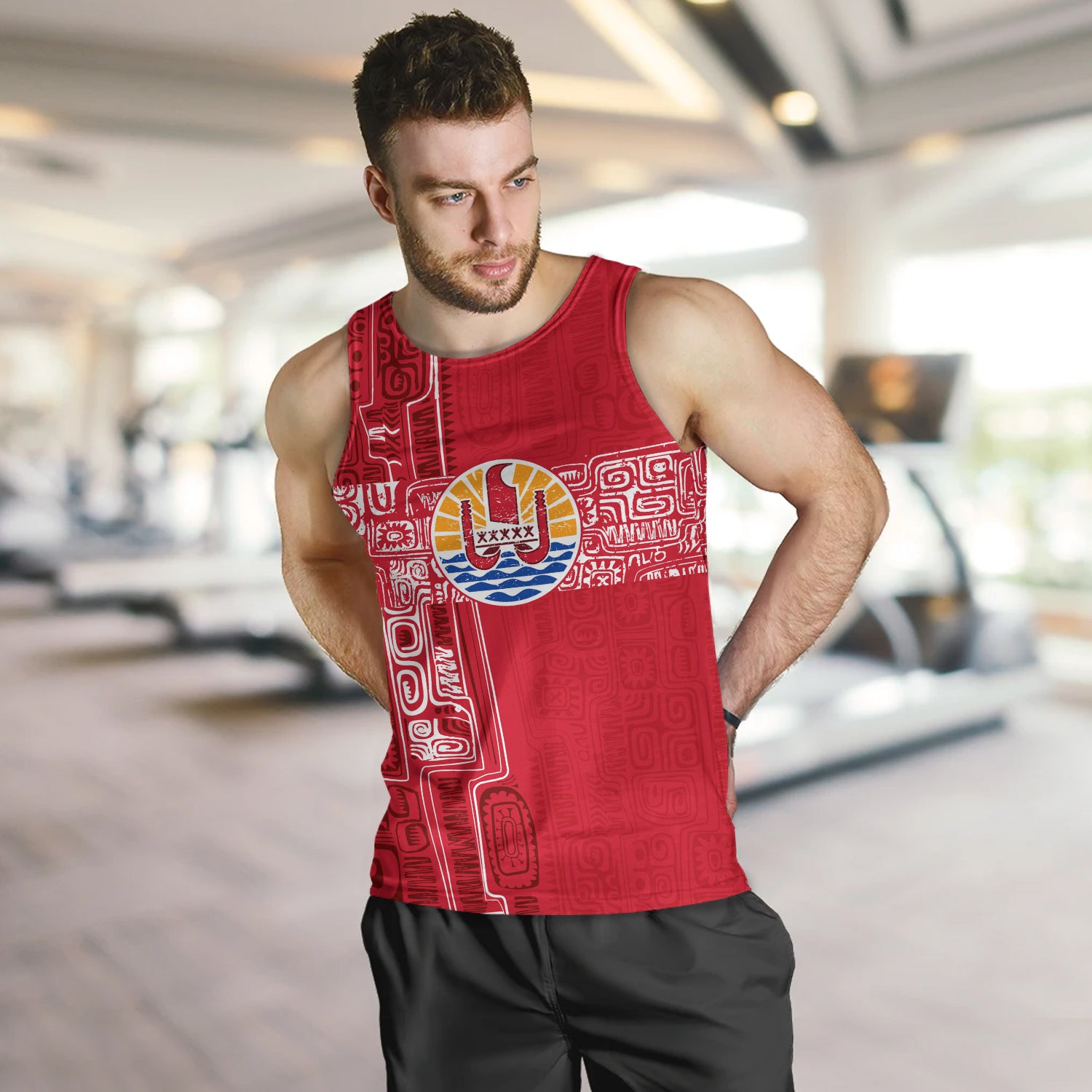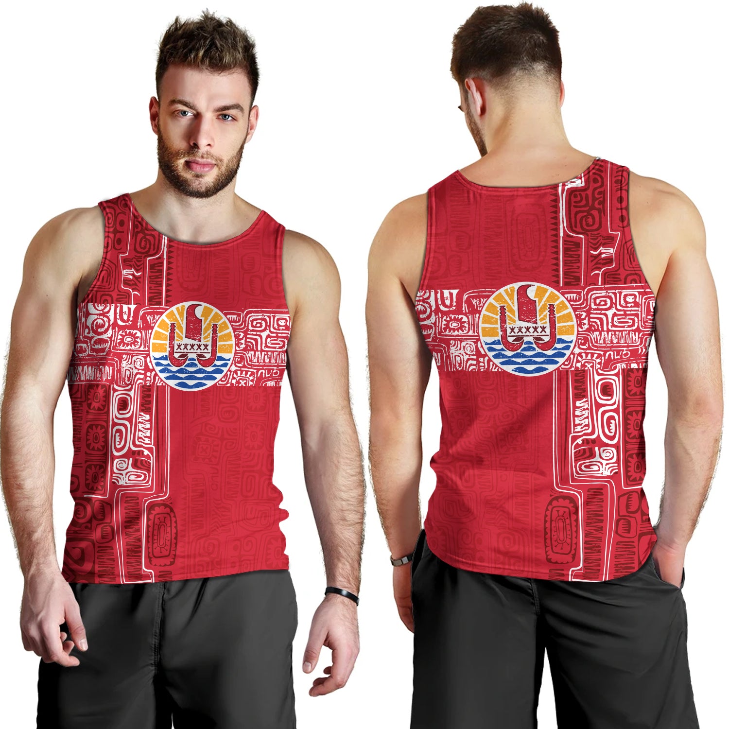 French Polynesia Tank Top Tribal Pattern Tahiti Vintage Style