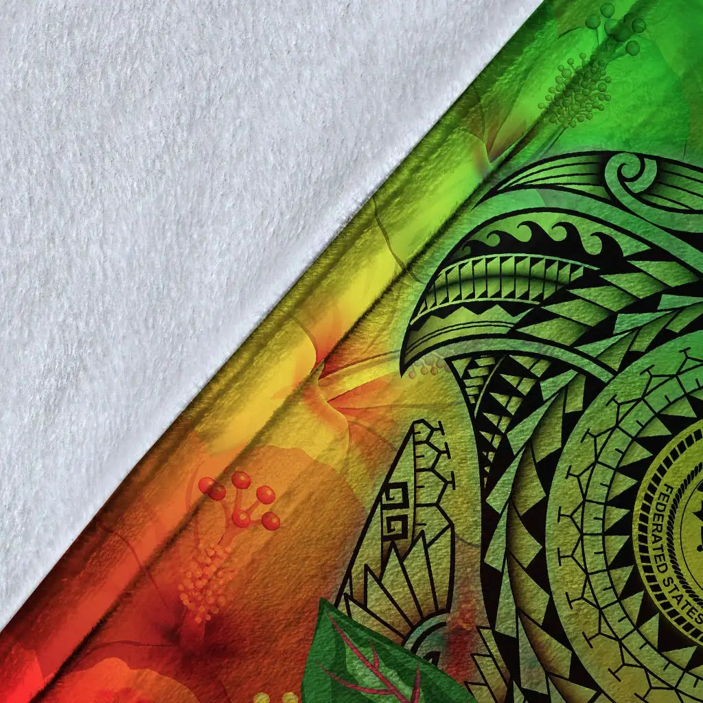Fsm Polynesian Premium Blanket - Manta Ray Tropical Flowers (Green)