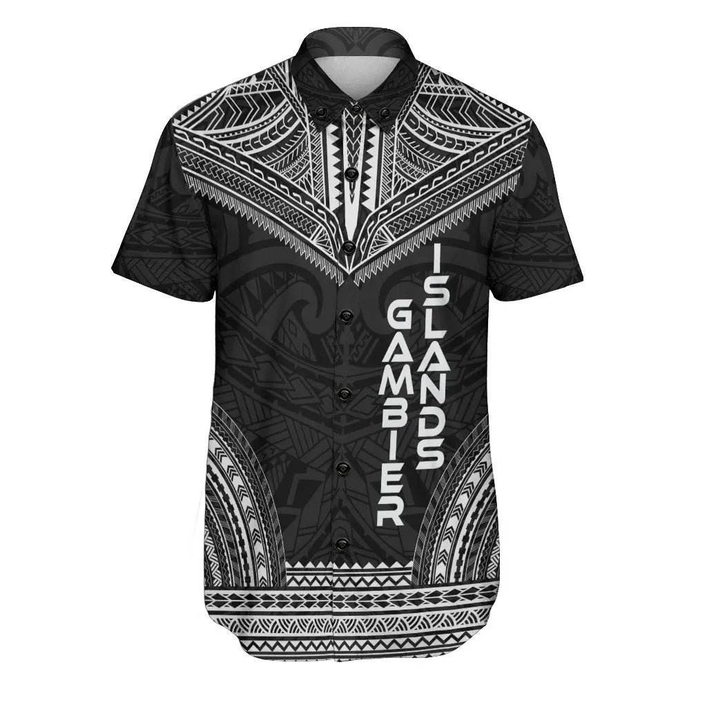 Gambier Islands Polynesian Chief Short Sleeve Shirt - Black Version