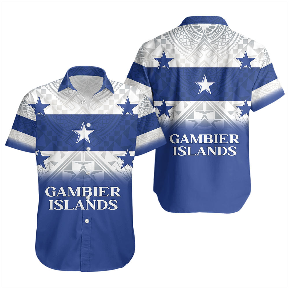 Gambier Islands Short Sleeve Shirt Flag Color With Traditional Patterns