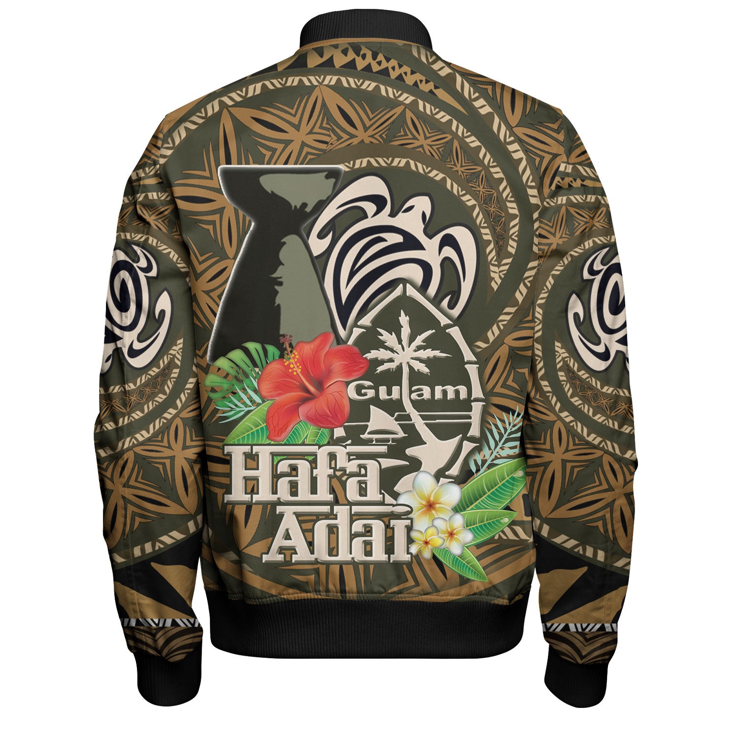 Guam Bomber Jacket Hafa Adai Seal Flower Tropical Retro Style