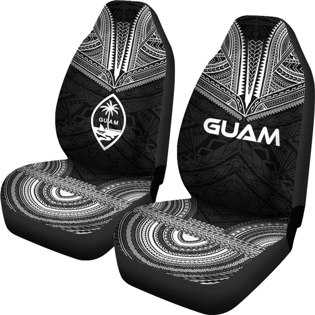 Guam Car Seat Cover - Guam Coat Of Arms Polynesian Chief Tattoo Black Version
