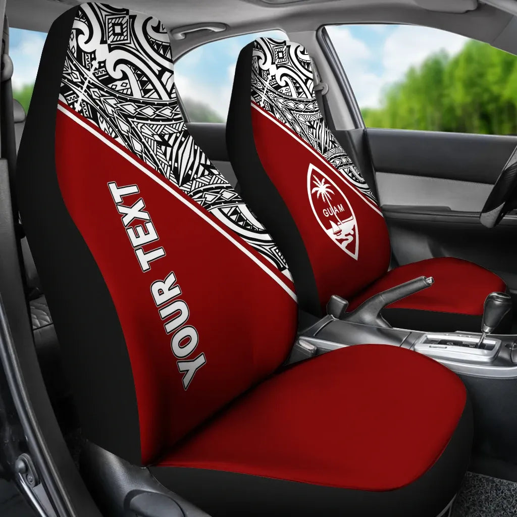 Guam Custom Personalised Car Seat Covers - Guam Coat Of Arms Polynesian Red Curve