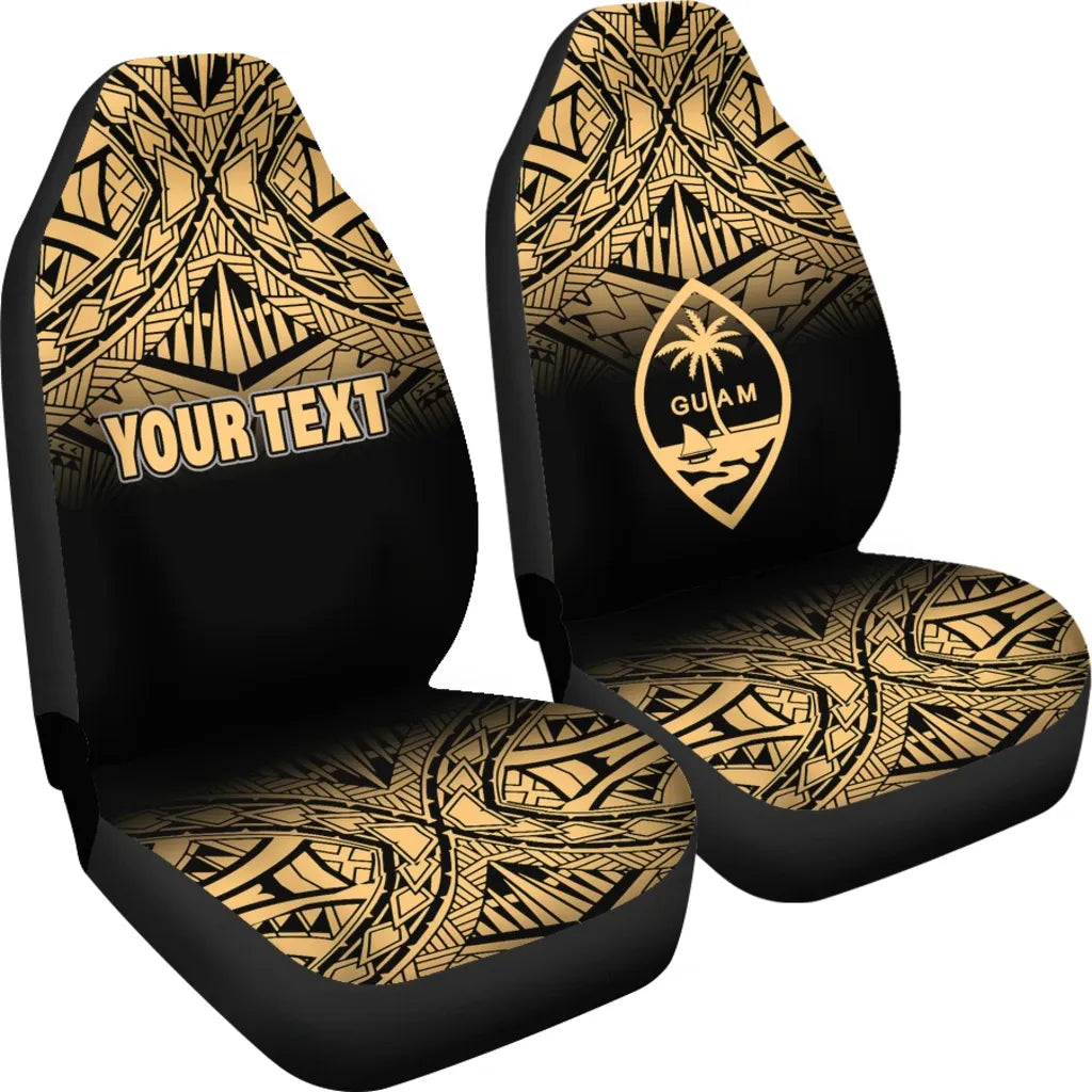 Guam Custom Personalised Car Seat Covers - Guam Coat Of Arms Polynesian Tattoo Fog Gold