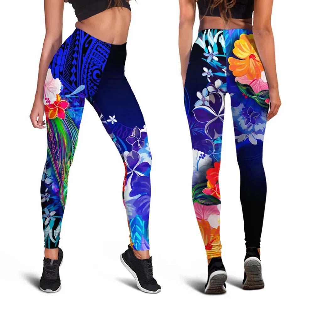 Guam Legging- Humpback Whale with Tropical Flowers (Blue)