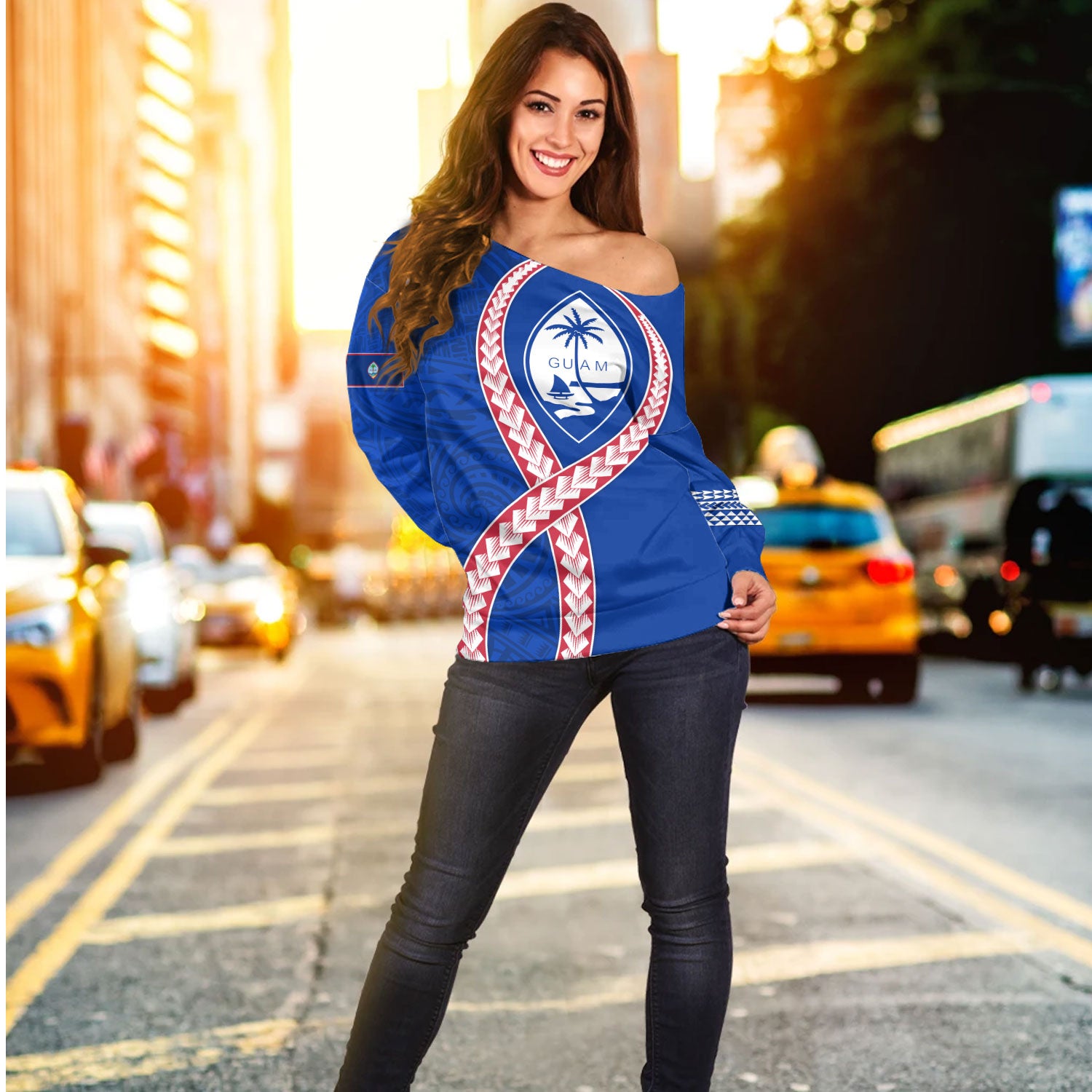 Guam Off Shoulder Sweatshirt Tribal Polynesian In My Heart