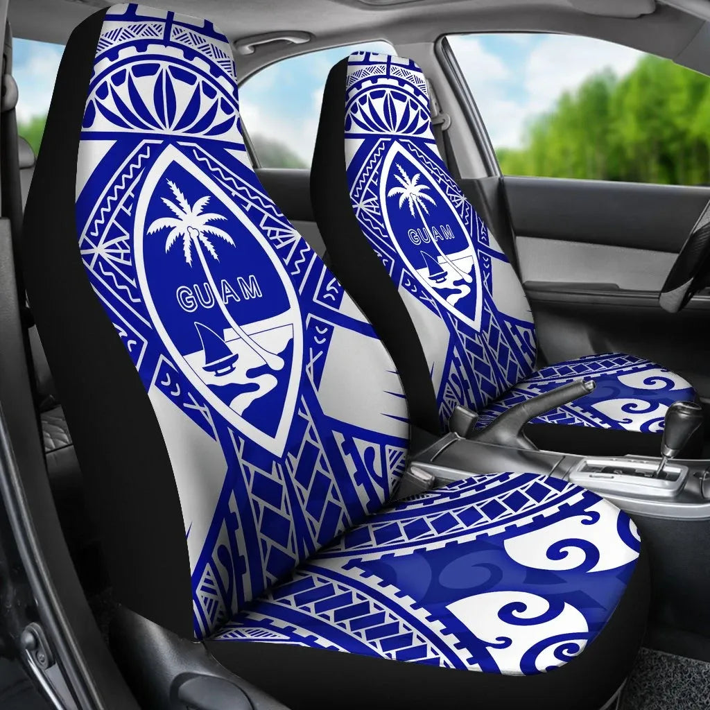 Guam Polynesian Car Seat Covers - Guam White Seal with Polynesian Tattoo Ver 02