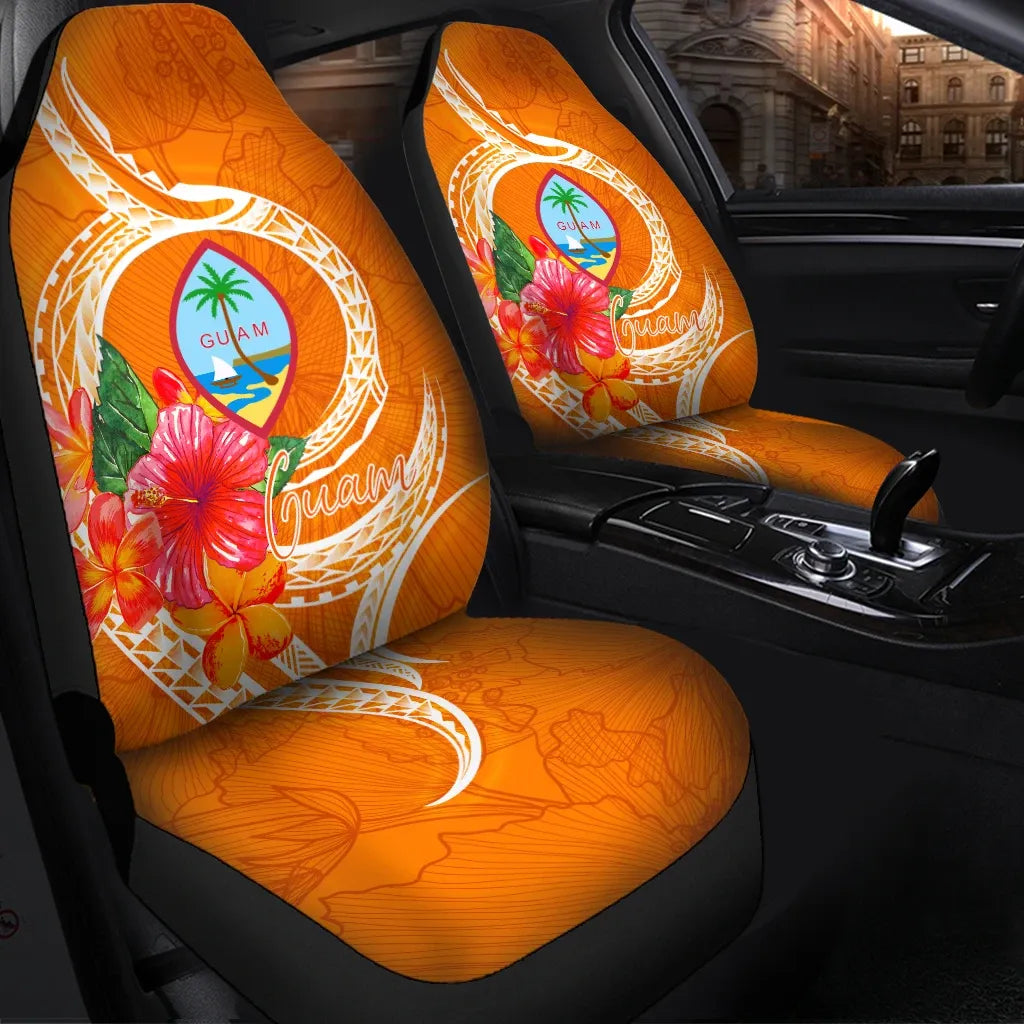 Guam Polynesian Car Seat Covers - Orange Floral With Seal