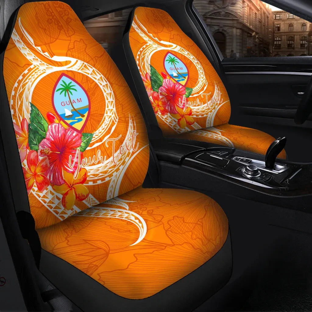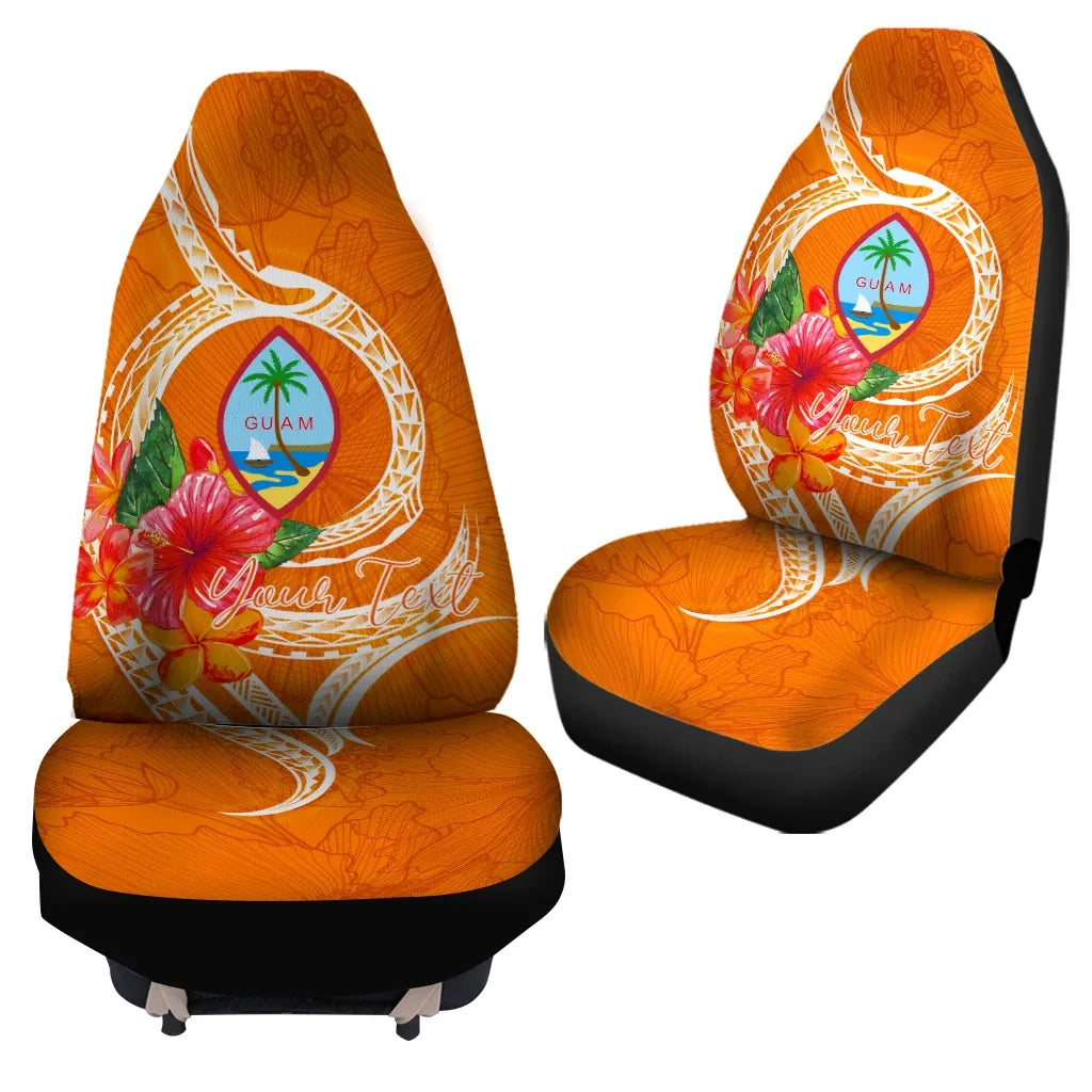Guam Polynesian Custom Personalised Car Seat Covers - Orange Floral With Seal