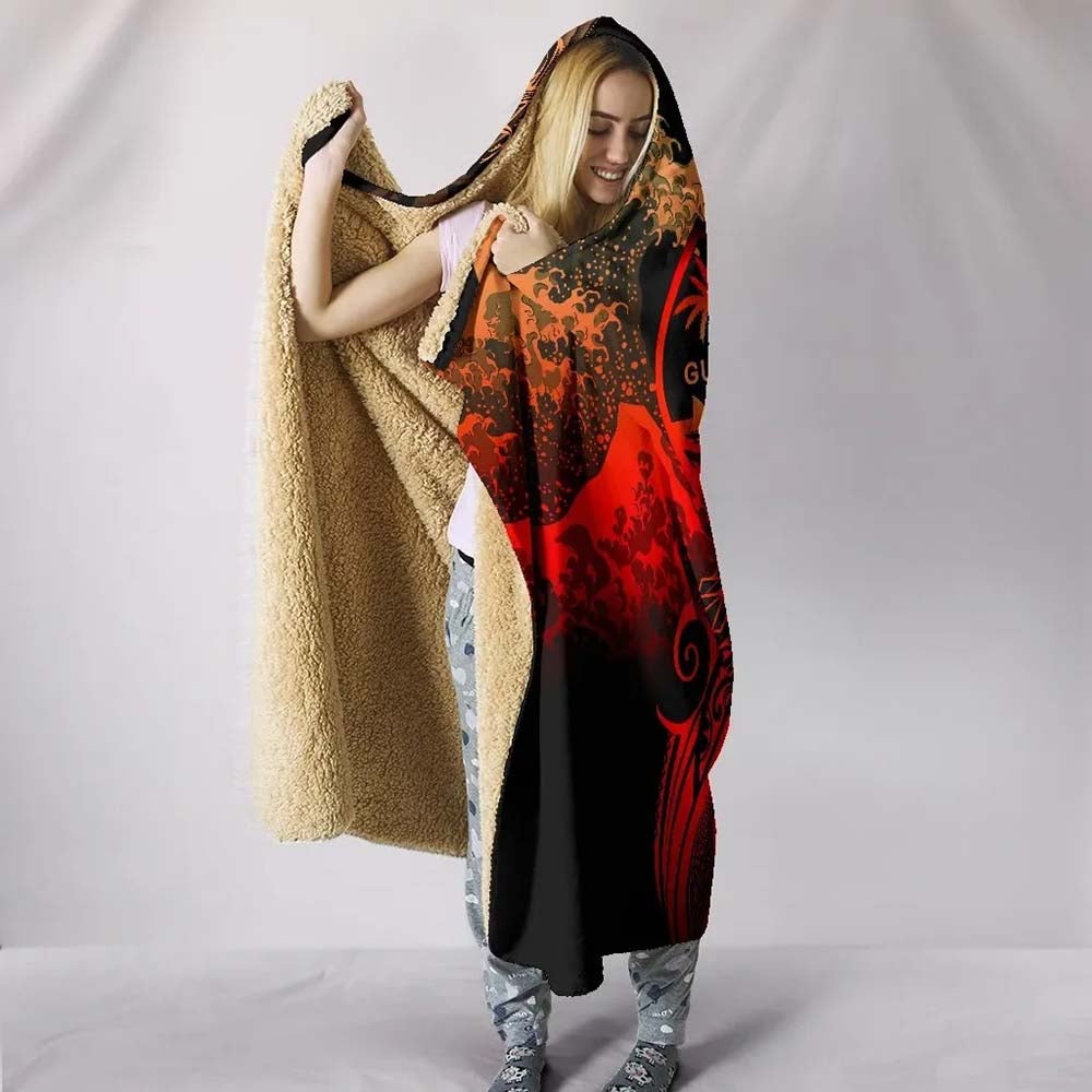 Guam Polynesian Hooded Blanket - Plumeria Flowers And Waves