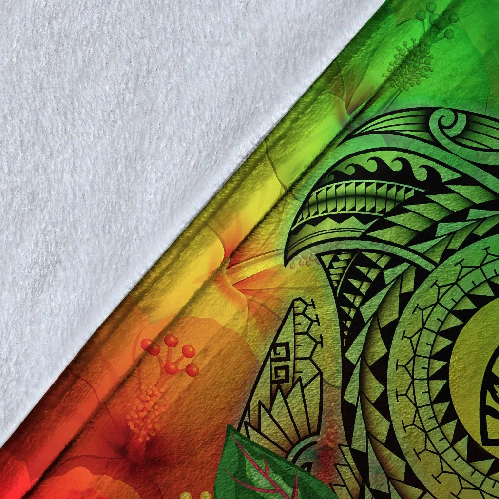 Guam Premium Blanket - Manta Ray Tropical Flowers (Green)