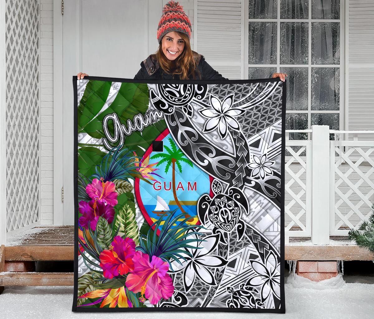 Guam Premium Quilt White - Turtle Plumeria Banana Leaf