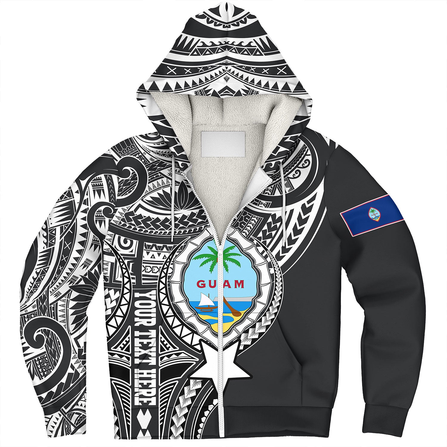 Guam Sherpa Hoodie Custom Guam Coat Of Arms Polynesian Half Body Tattoo Black Style