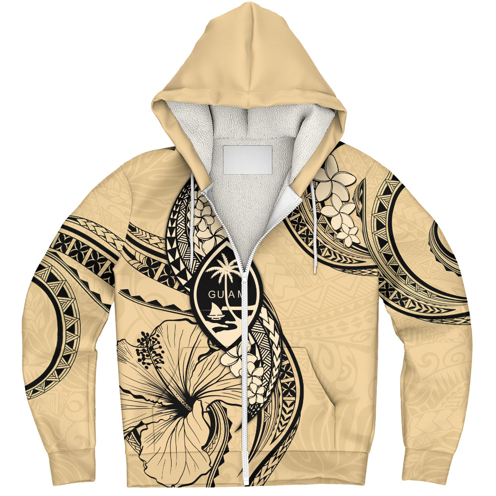 Guam Sherpa Hoodie Tribal Tropical Flower With Pattern Leaves