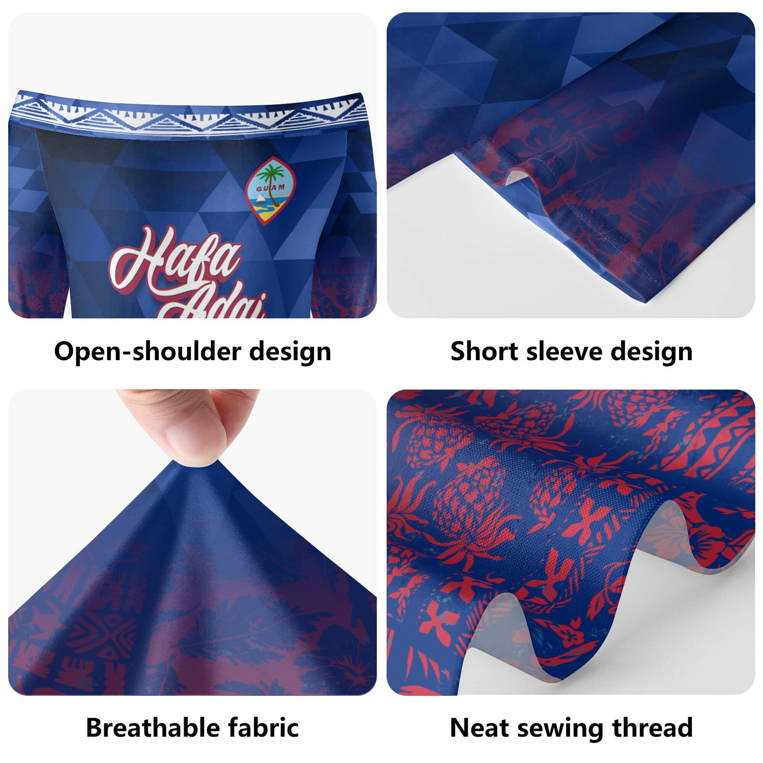 Guam Short Sleeve Off The Shoulder Lady Dress Lowpolly With Tribal Motif