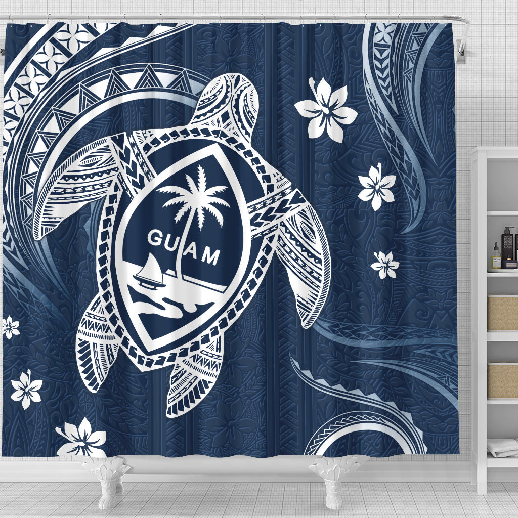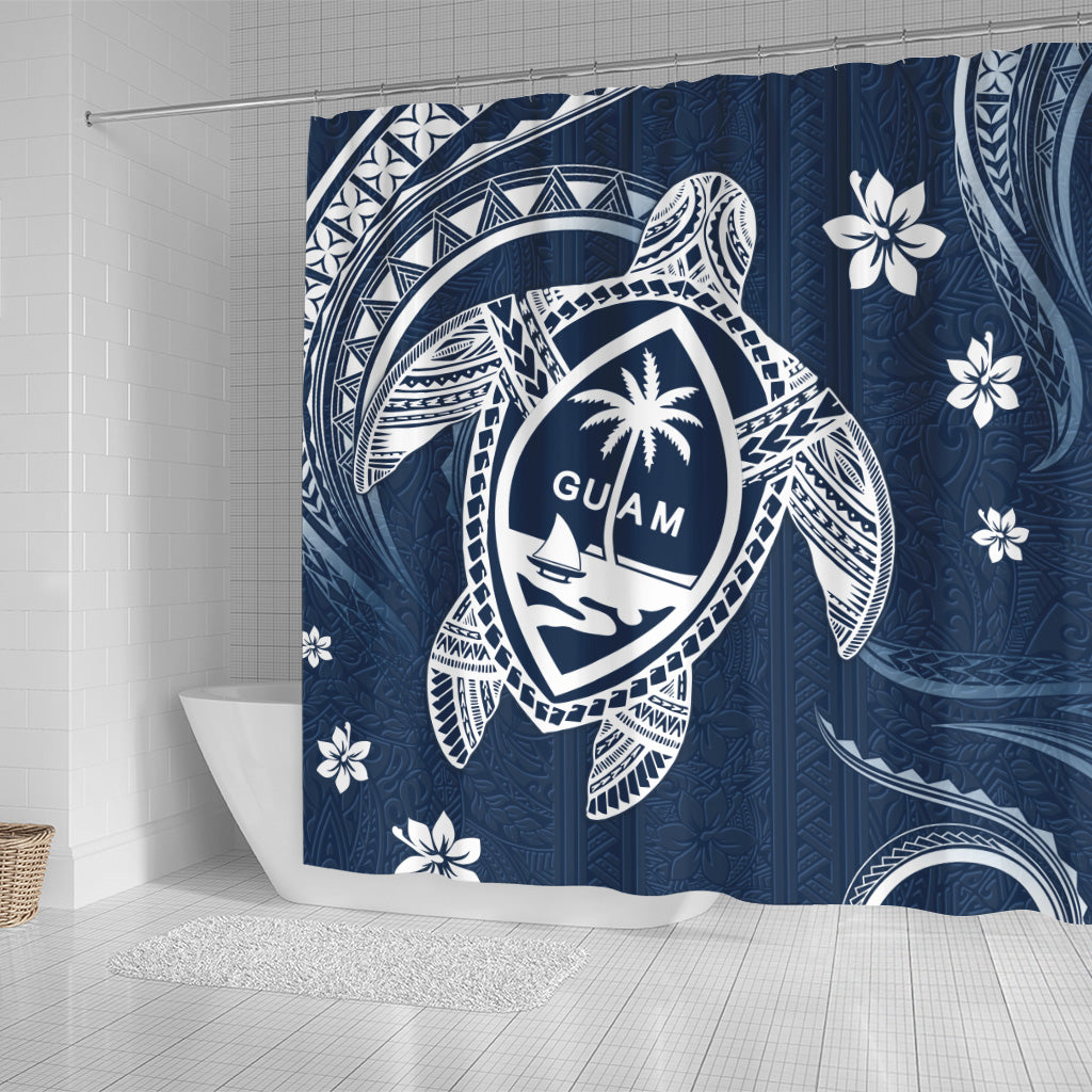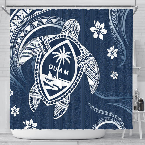 Guam Shower Curtain Turtle Polynesian Pattern Blue Ver